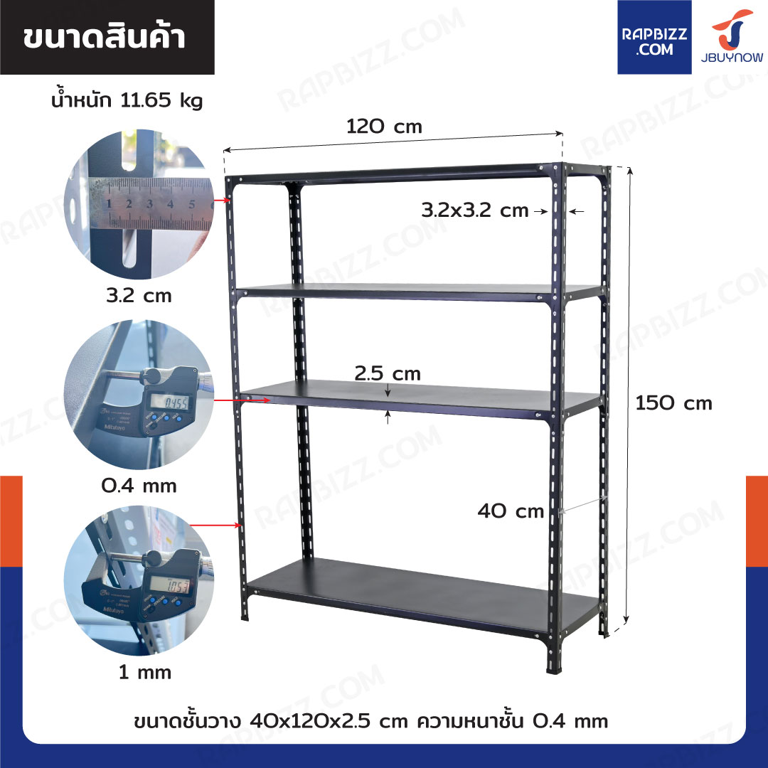- ขนาดชั้นวาง: 40x120x2.5 cm