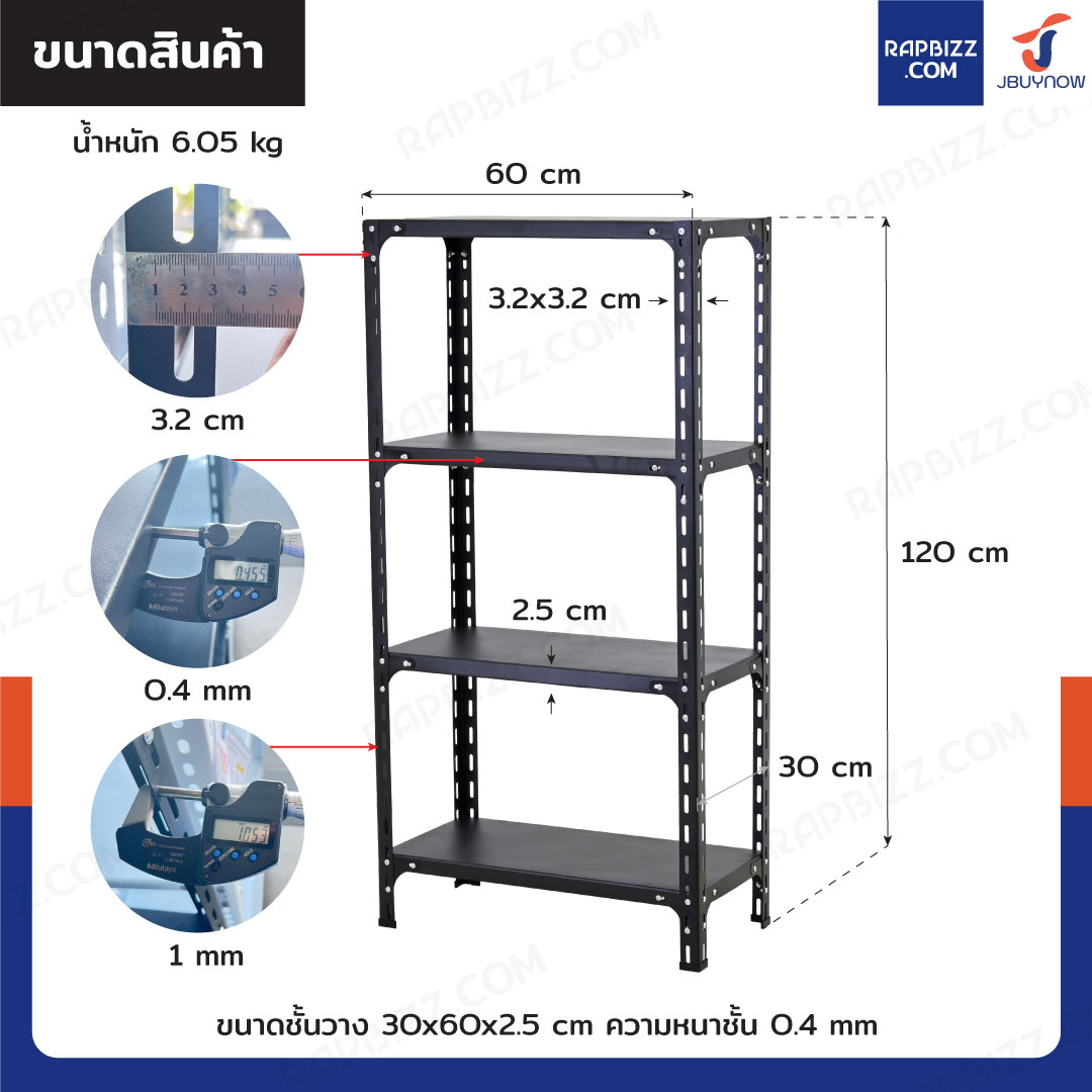 - ขนาดชั้นวาง: 30x60x2.5 cm
