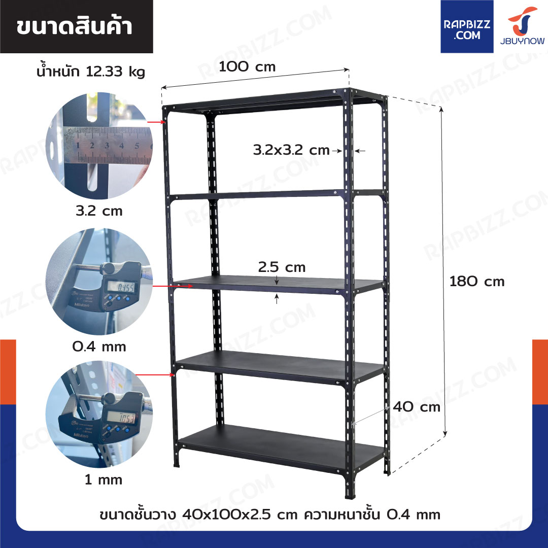 - ขนาดชั้นวาง: 40x100x2.5 cm
