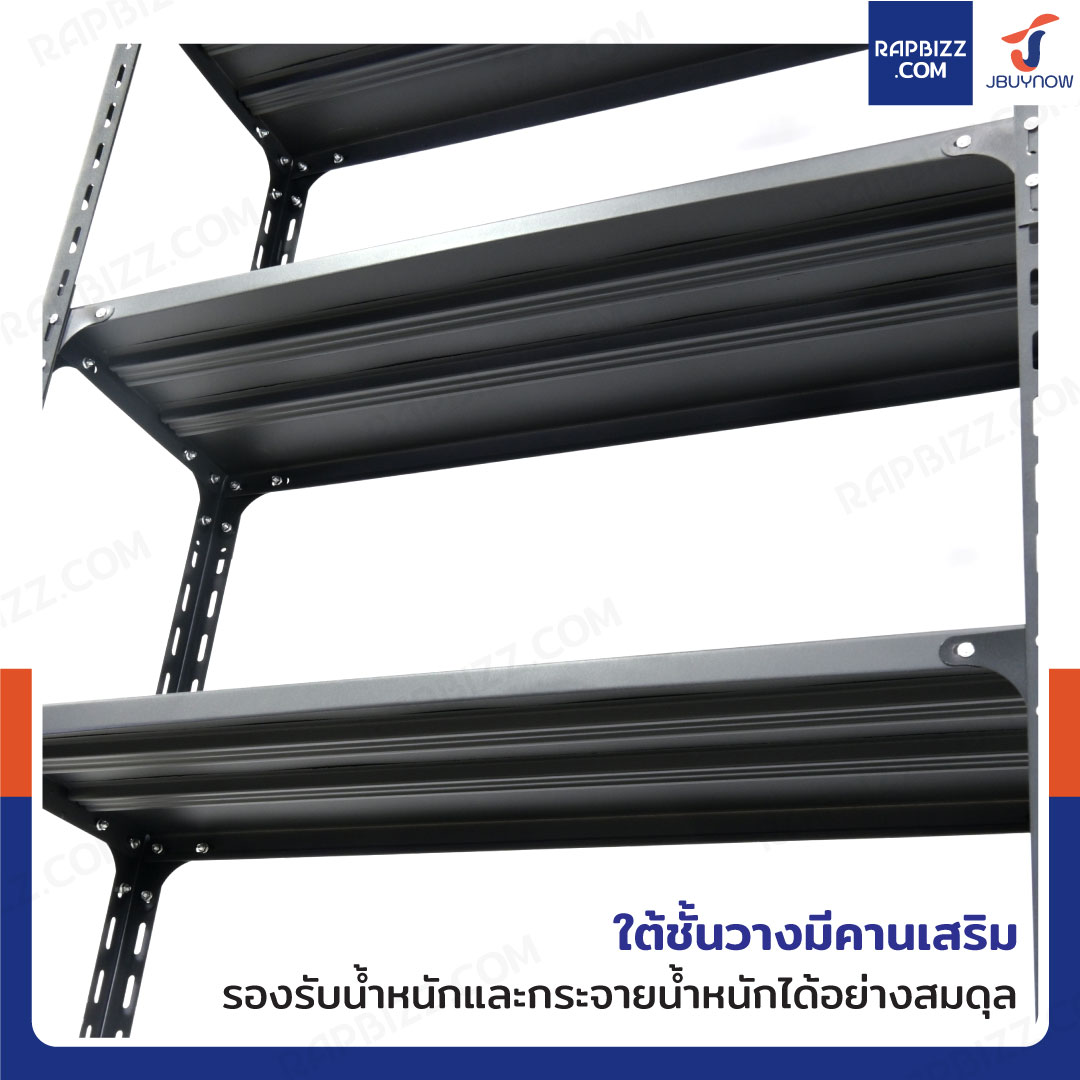 - ใต้ชั้นวางมีคานเสริมช่วยรองรับน้ำหนักและกระจายน้ำหนักได้อย่างสมดุล