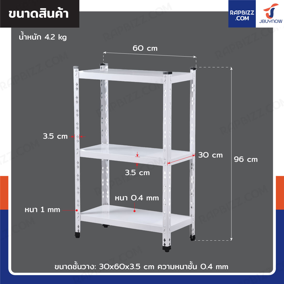 ชั้นวางของเหล็ก 3 ชั้น ชั้นวางอเนกประสงค์ 30x60x96 cm สีขาว