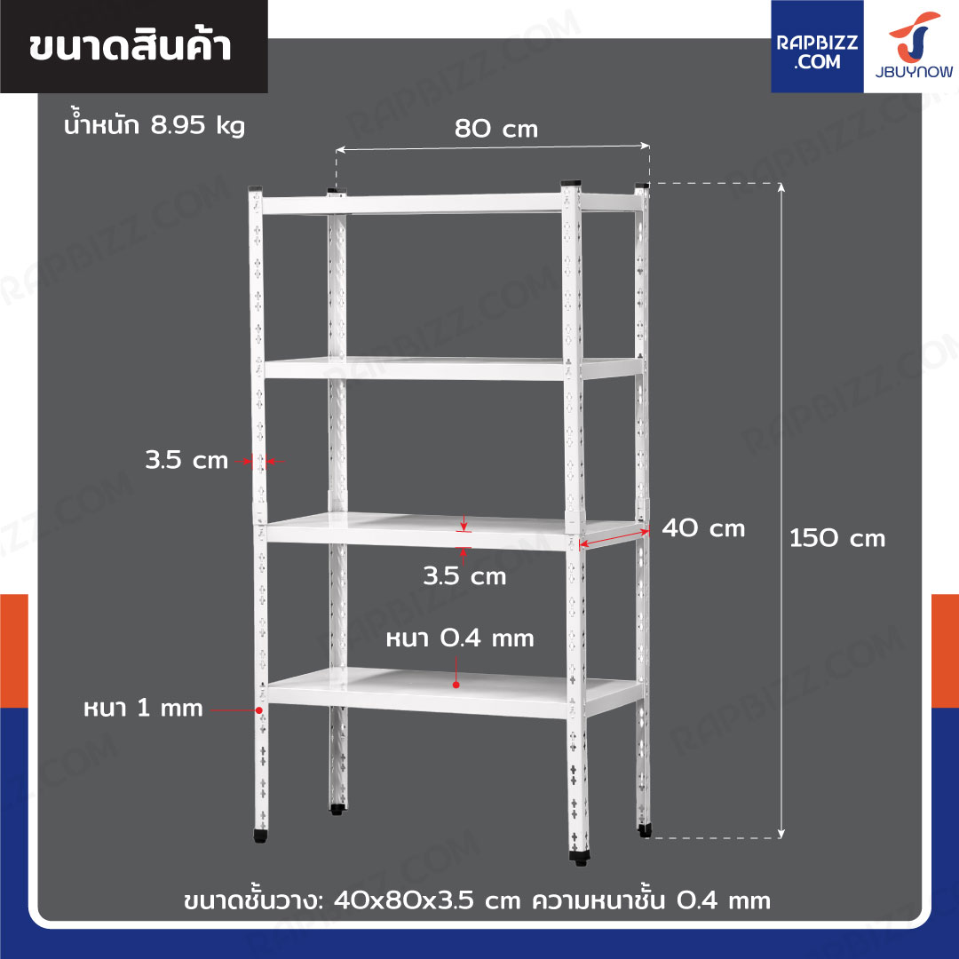 - ขนาดชั้นวาง: 40x80x3.5 cm