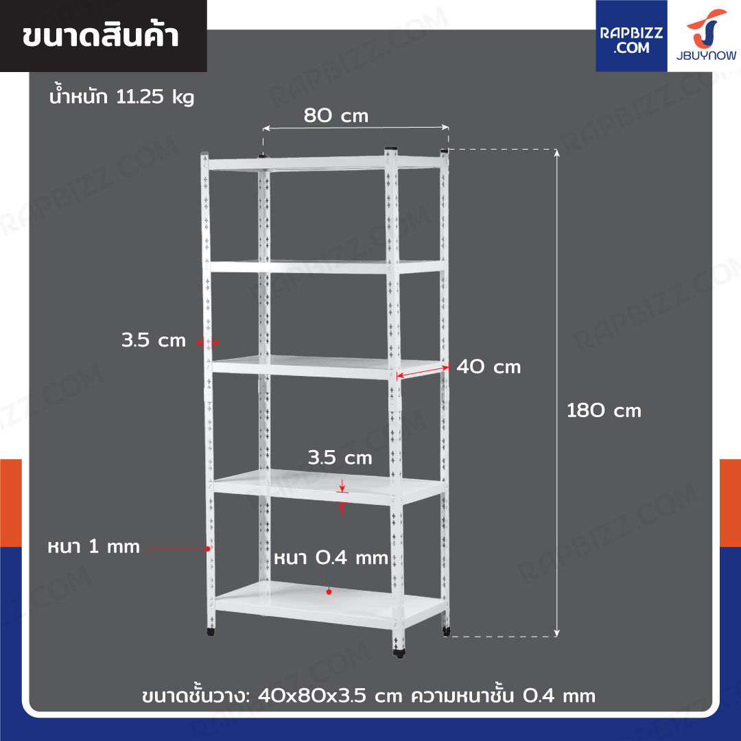 - ขนาดชั้นวาง: 40x80x3.5 cm