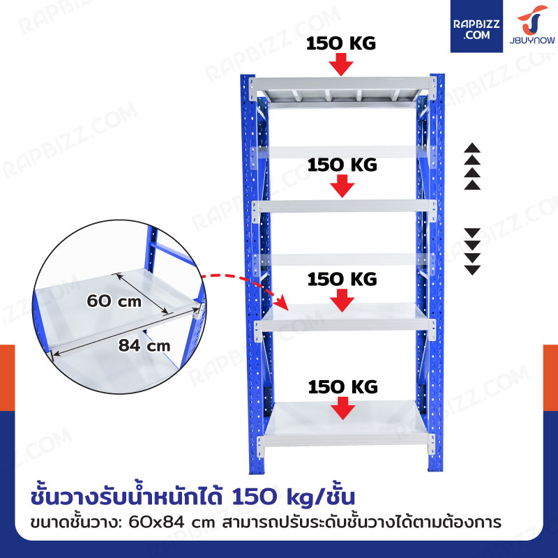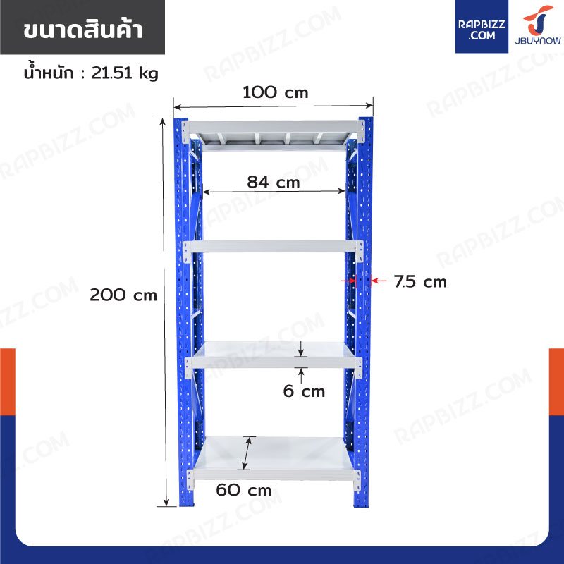 ชั้นวางของ 4 ชั้น 60x100x200 cm สีขาว-น้ำเงิน รับน้ำหนัก 150 kg รุ่นขาเชื่อม