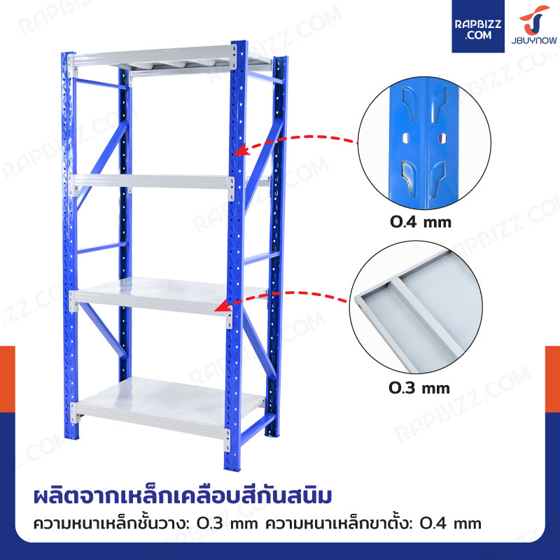 - ชั้นวางของในโรงงาน 4 ชั้น สีขาว-น้ำเงิน