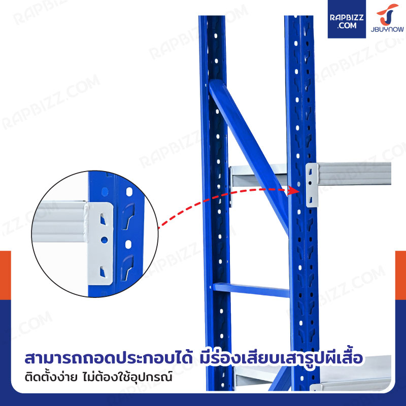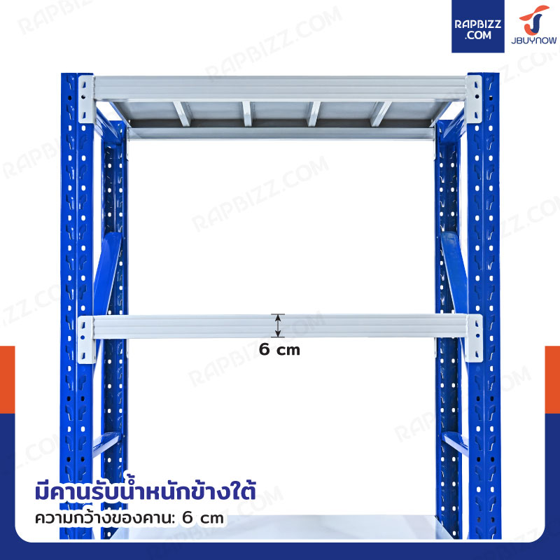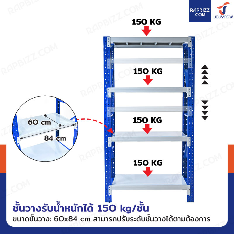 - แผ่นชั้นวางออกแบบให้มีคานเสริมเพื่อความแข็งแรง สามารถปรับระดับได้ตามต้องการ