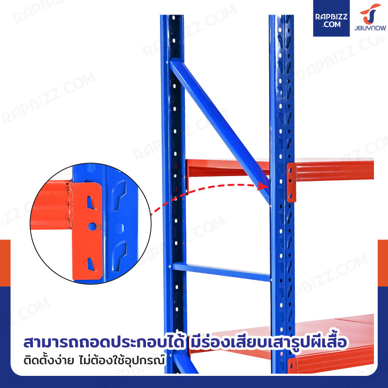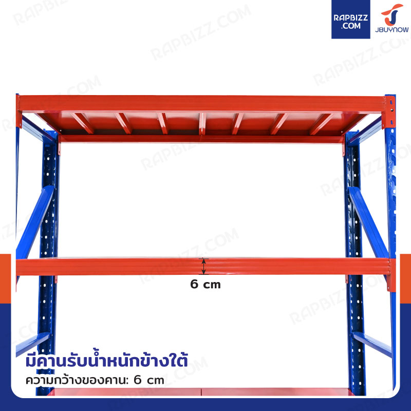 - ชั้นวางของในโรงงาน 4 ชั้น สีส้ม-น้ำเงิน