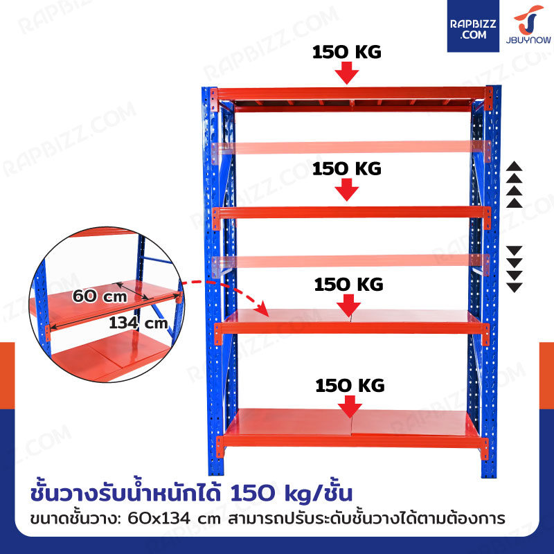 - ชั้นวางสามารถรับน้ำหนักได้ 150 kg/ ชั้น