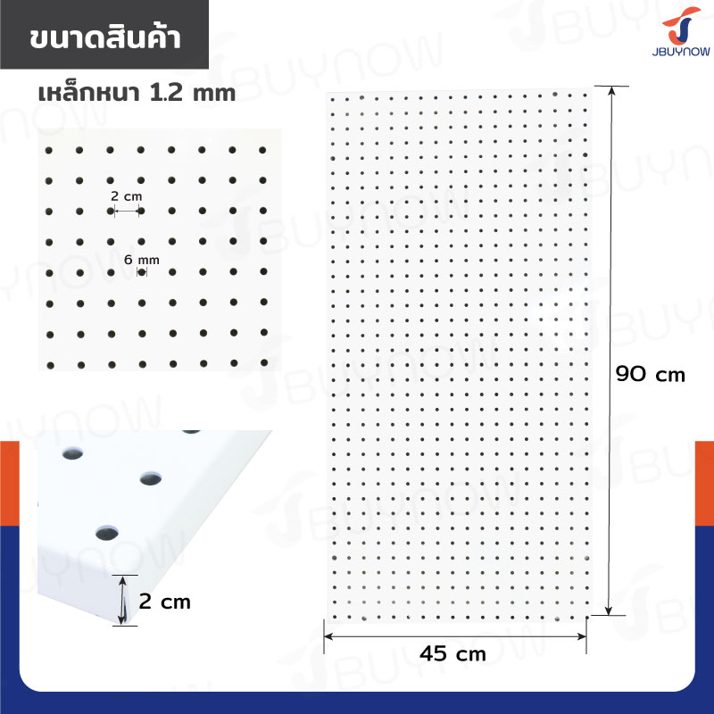 กระดานเพ็กบอร์ด แผงเหล็กเจาะรูติดผนัง รูกลม 45x90x2cm เหล็กหนา 1.2mm สีขาว JBUYNOW RB231127-1WH