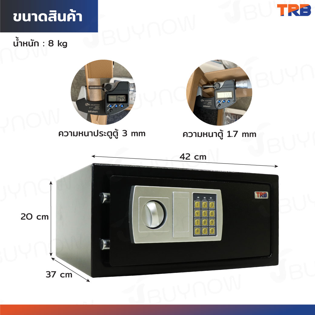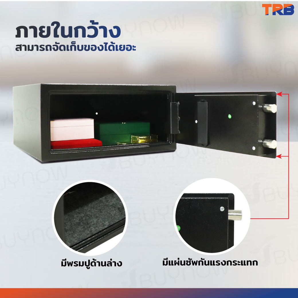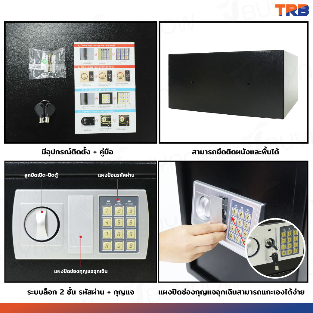 TRB ตู้เซฟอิเล็กทรอนิกส์ 37x42x20 ซม.รหัสผ่าน+กุญแจ บอดี้สีดำ-แผงหน้าปัดสีเงิน
