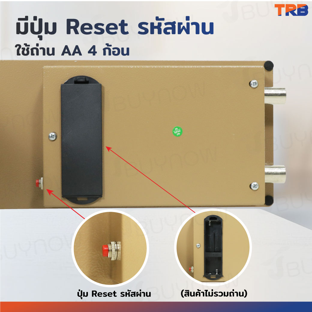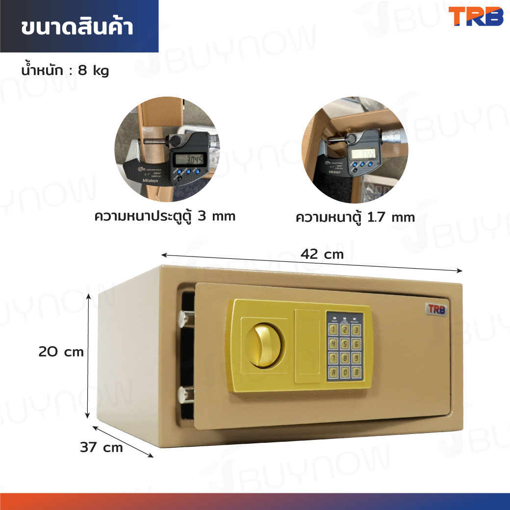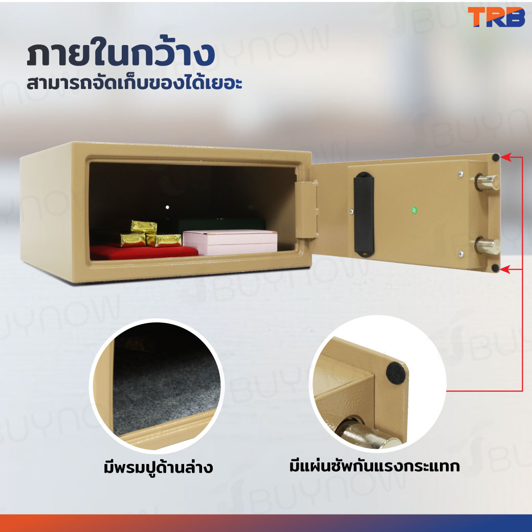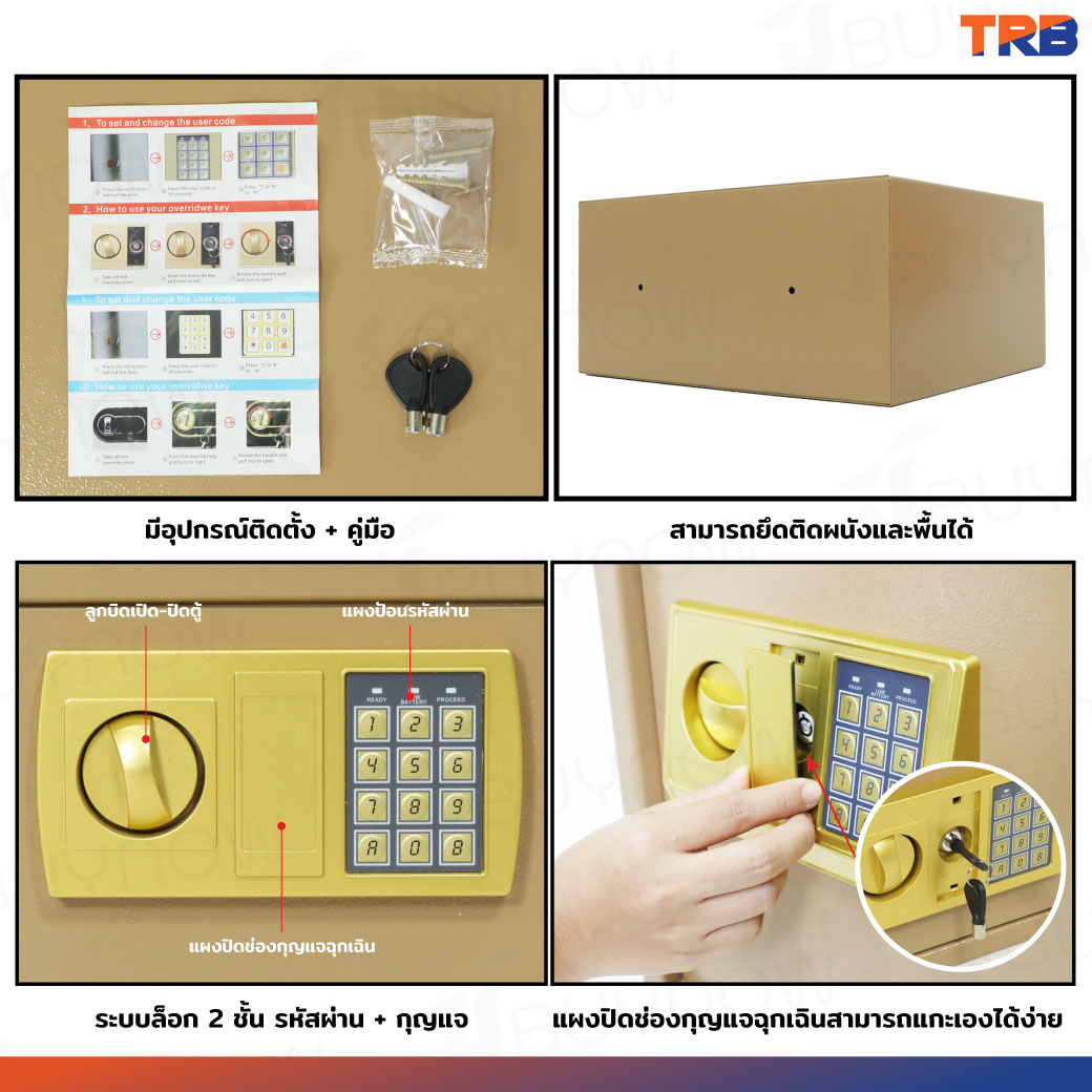 TRB ตู้เซฟอิเล็กทรอนิกส์ 37x42x20 ซม.รหัสผ่าน+กุญแจ บอดี้สีทอง-แผงหน้าปัดสีทอง