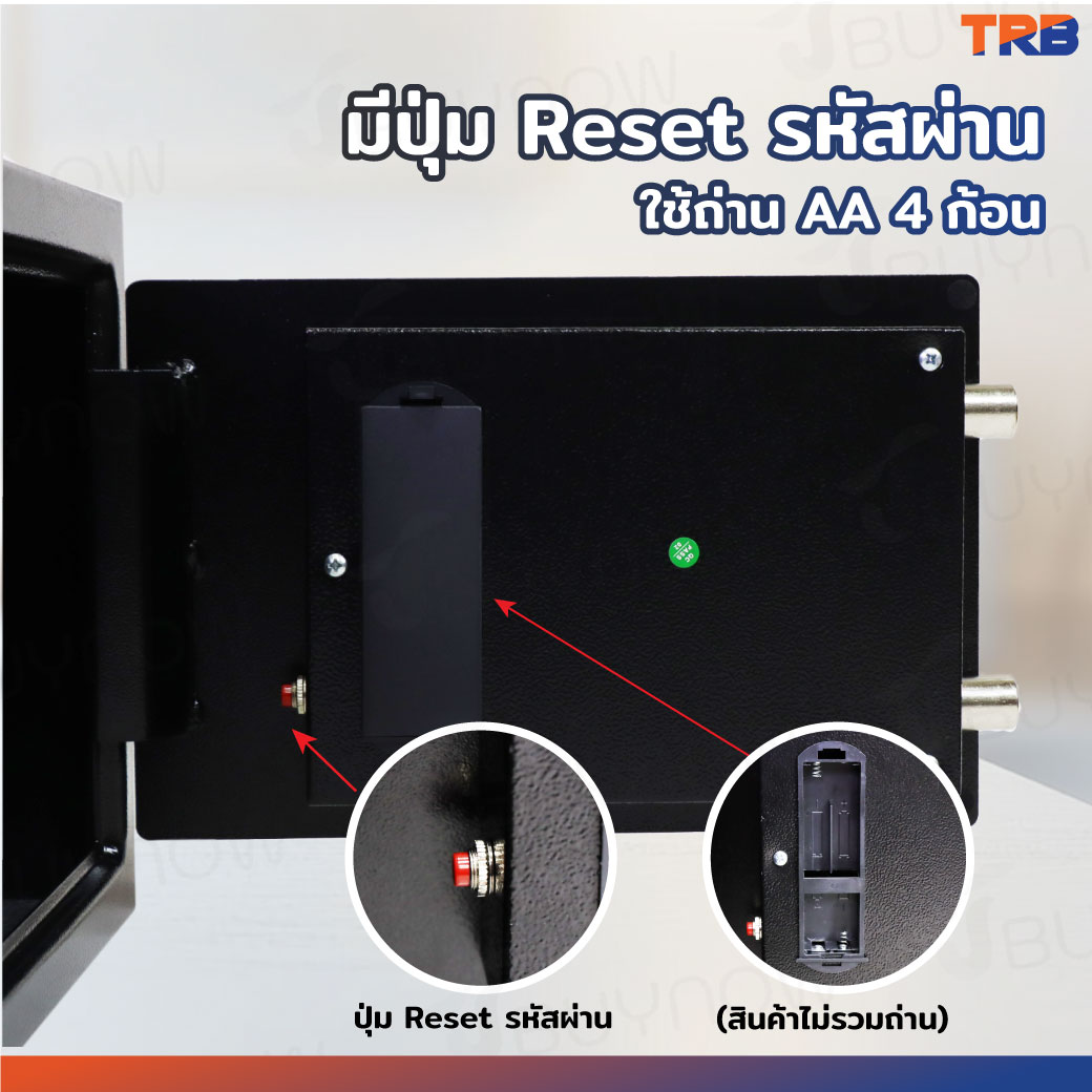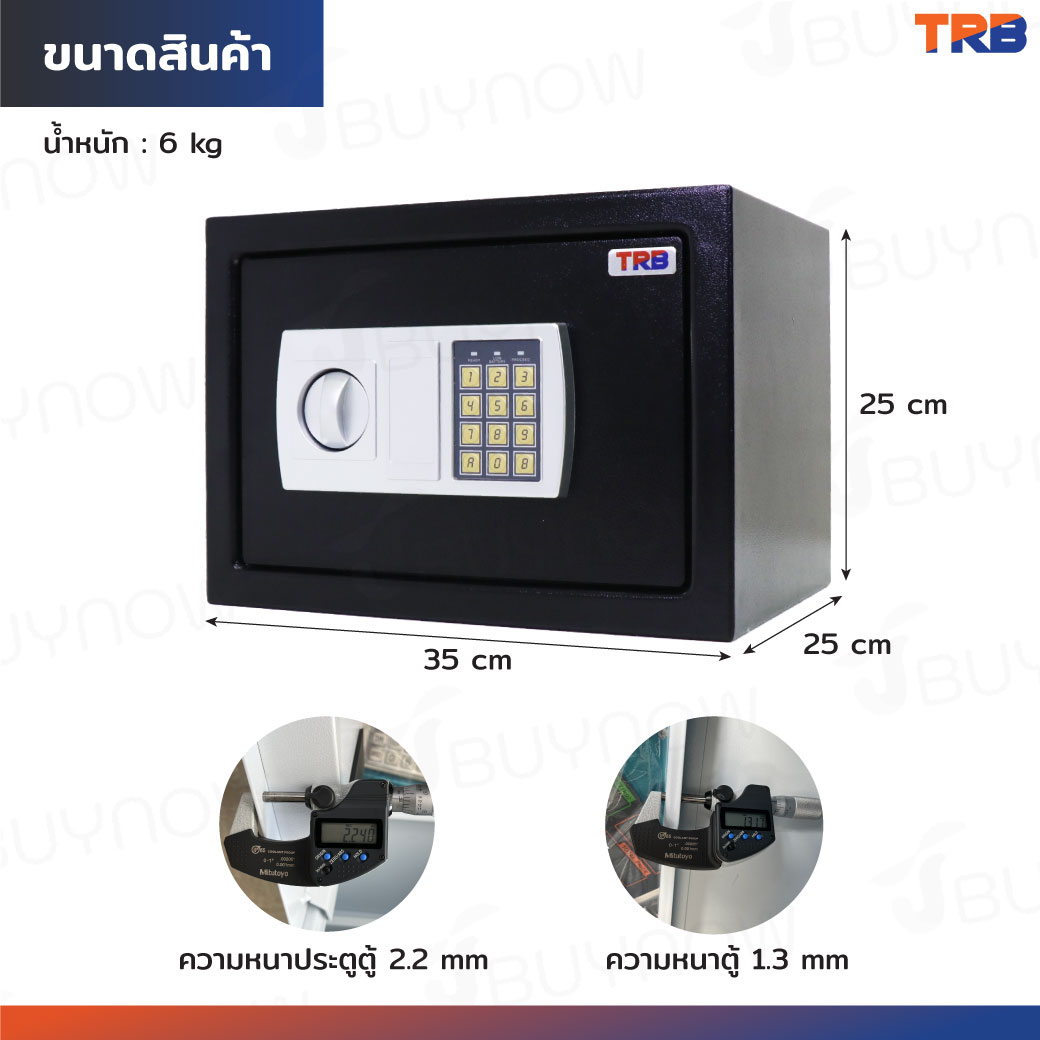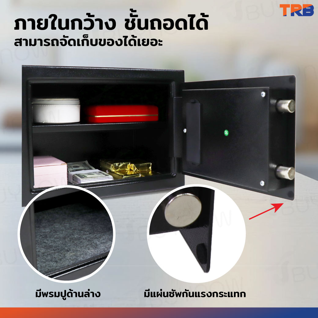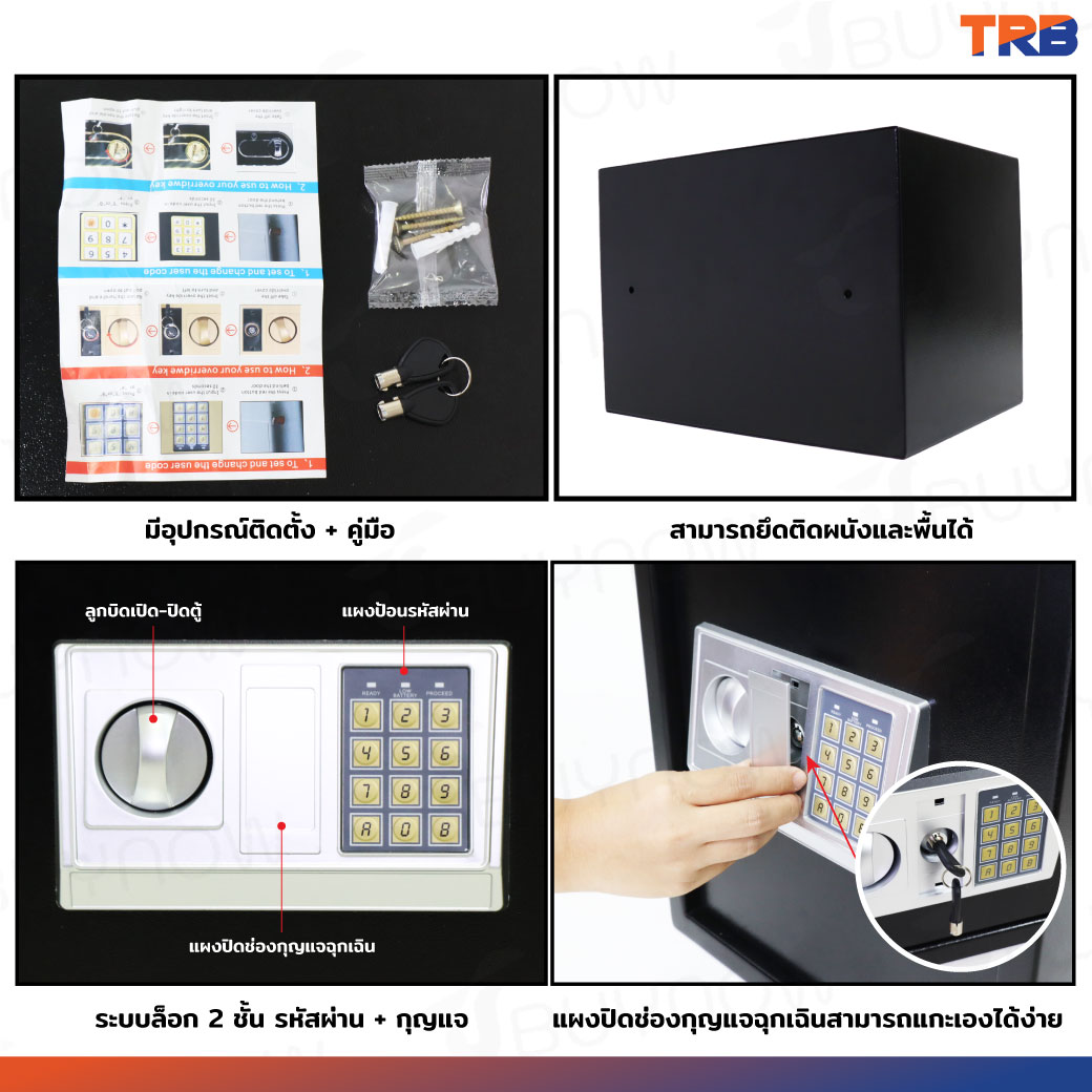 ตู้เซฟ TRB 25x35x25 ซม.รหัสผ่าน+กุญแจ บอดี้สีดำ-แผงหน้าปัดสีเงิน