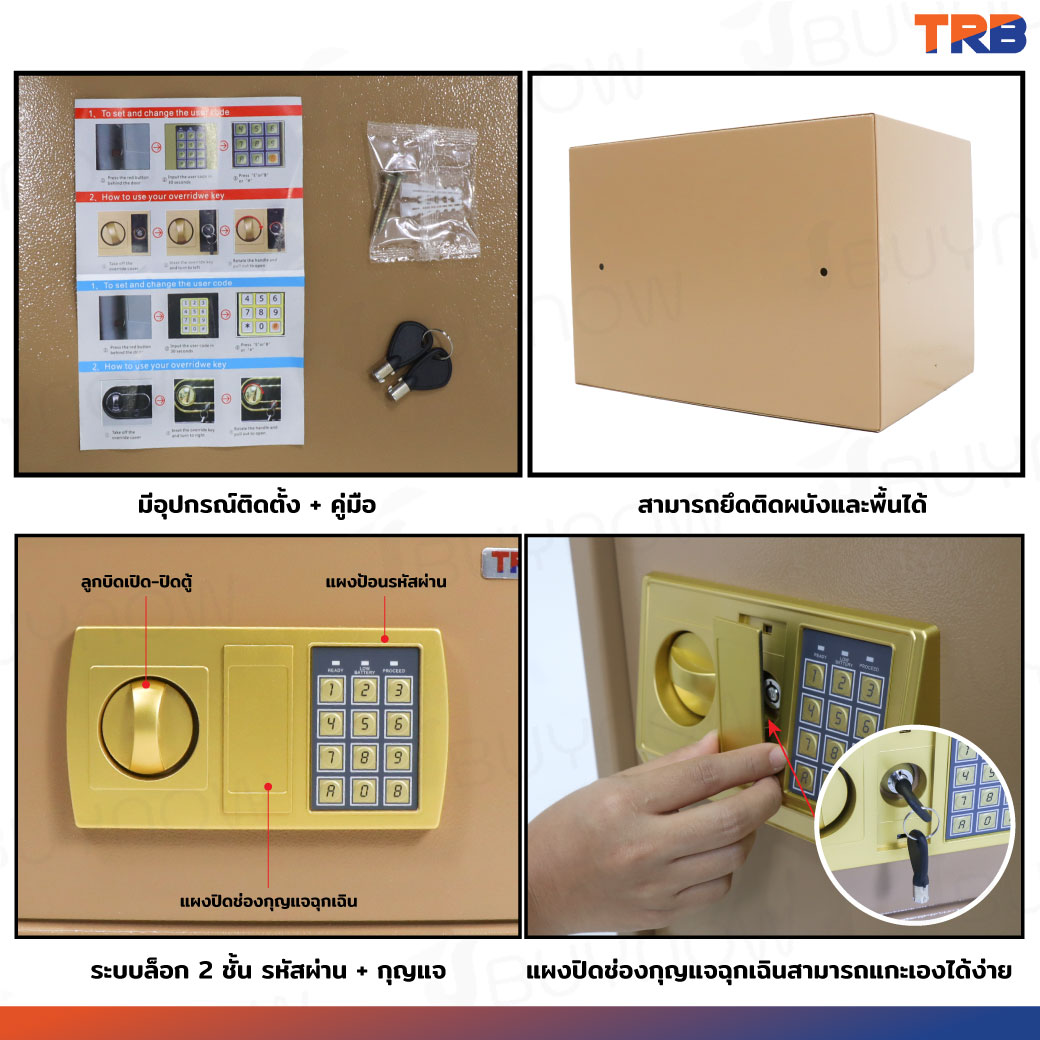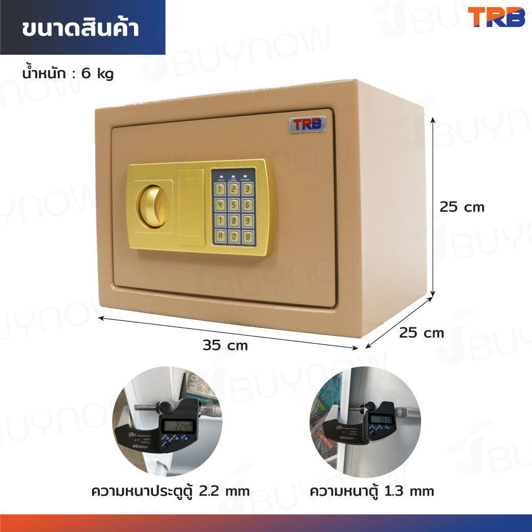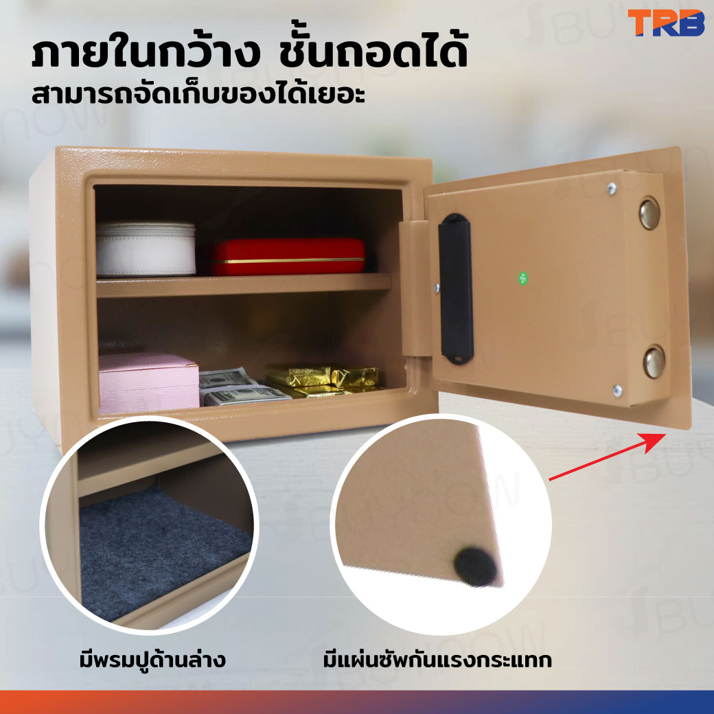 ตู้เซฟ TRB 25x35x25 ซม.รหัสผ่าน+กุญแจ บอดี้สีทอง-แผงหน้าปัดสีทอง
