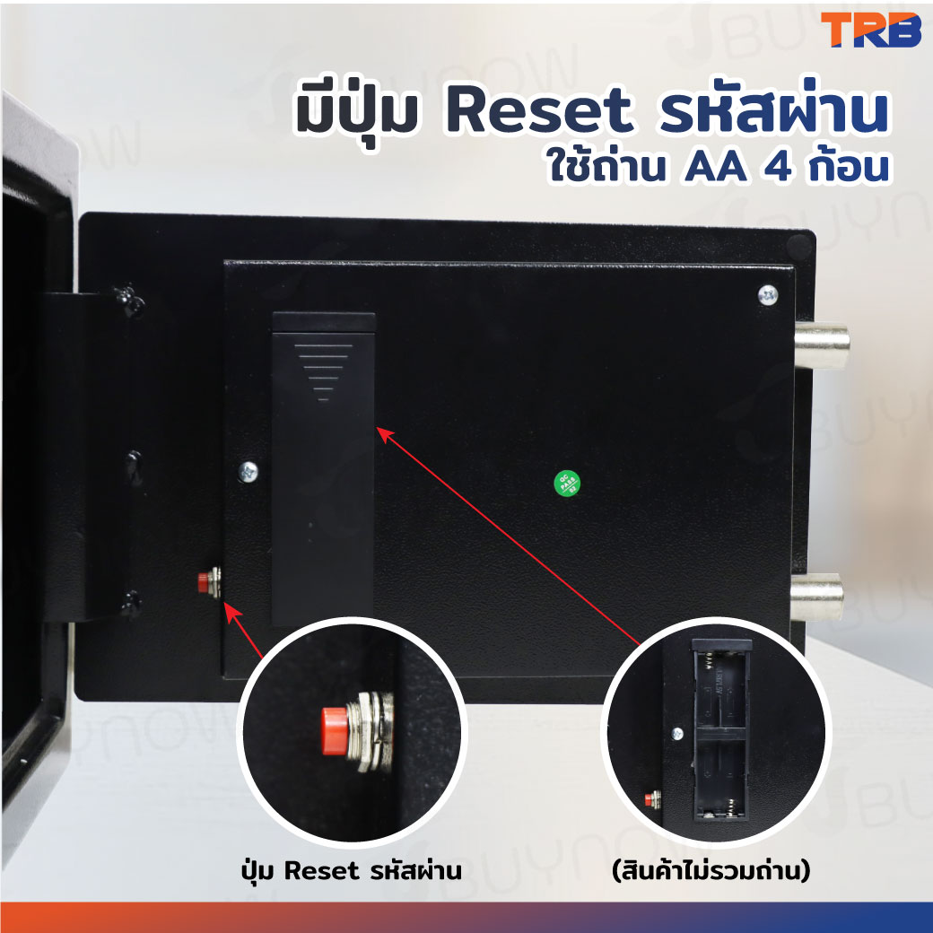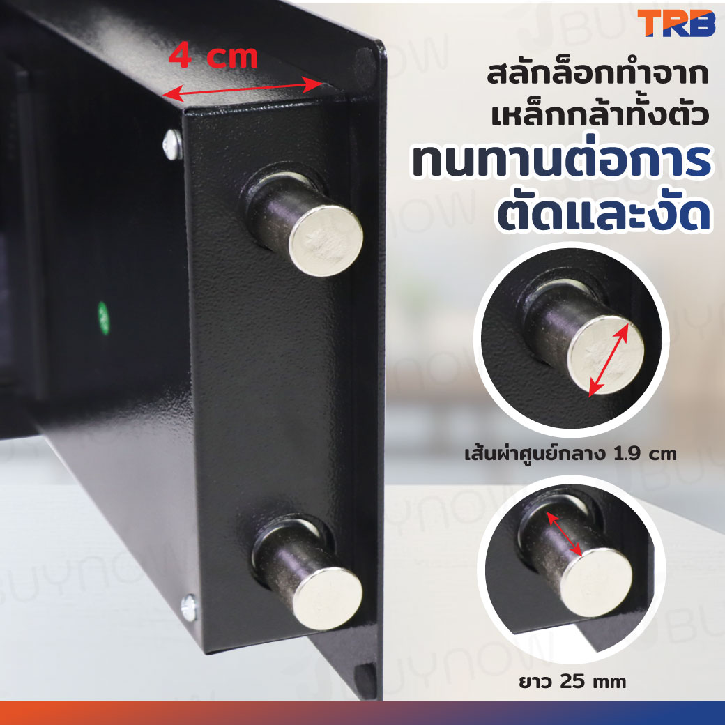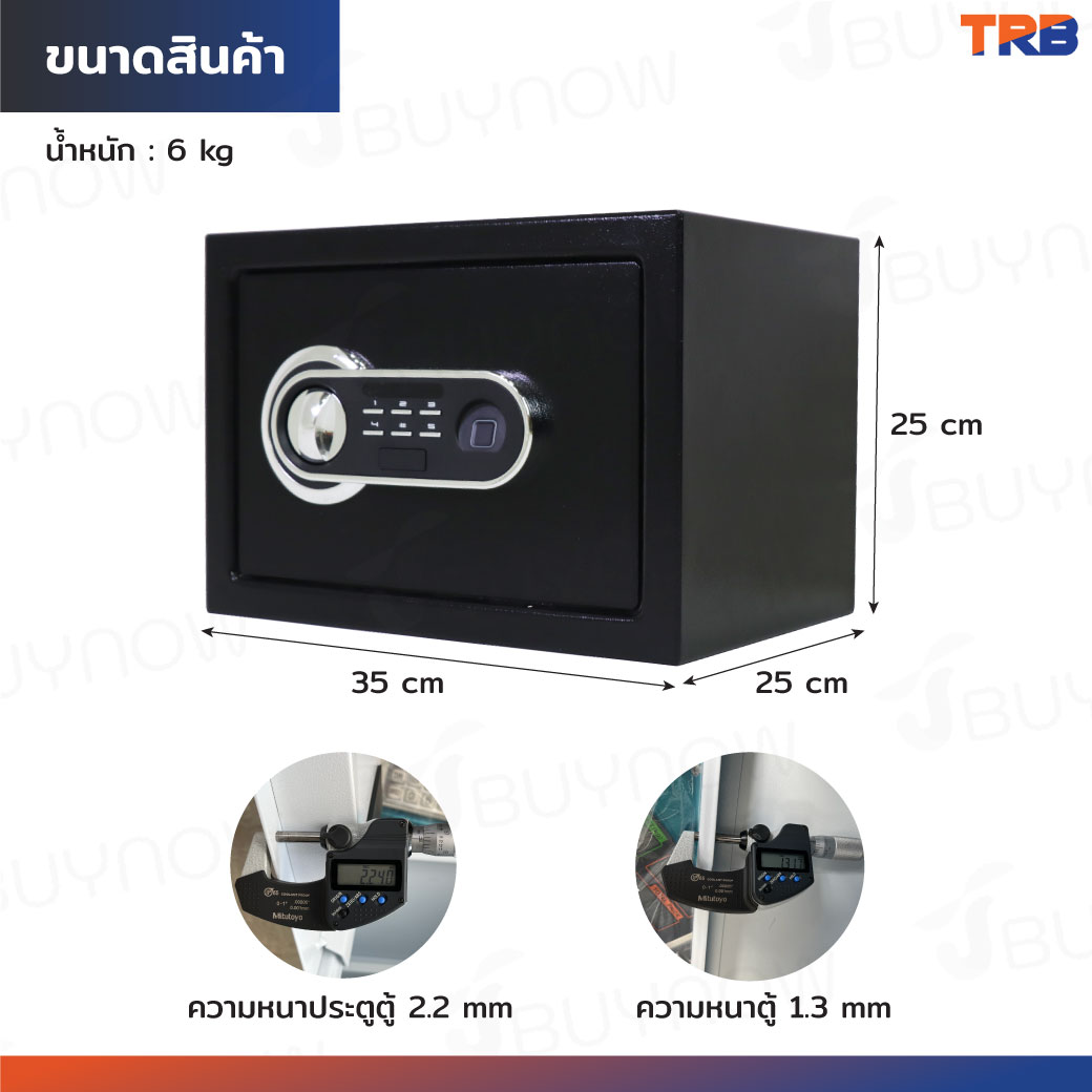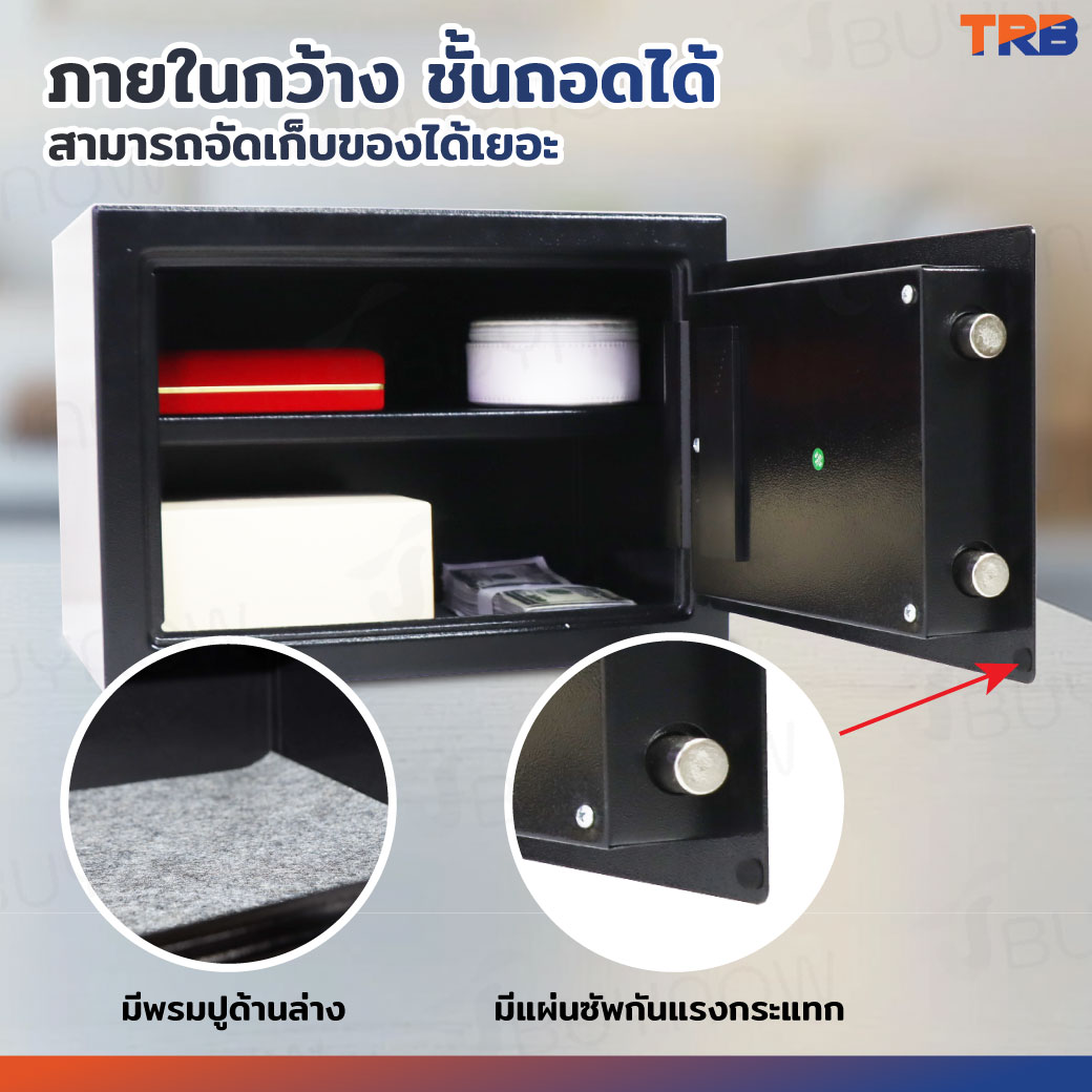 ตู้เซฟ TRB 25x35x25 ซม.สแกนนิ้ว+รหัสผ่าน+กุญแจ บอดี้สีดำ-แผงหน้าปัดสีเงิน