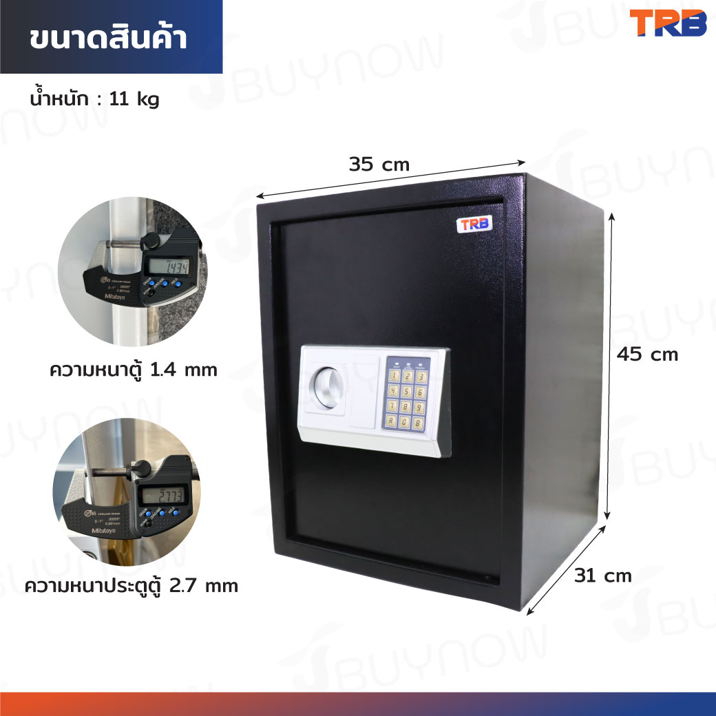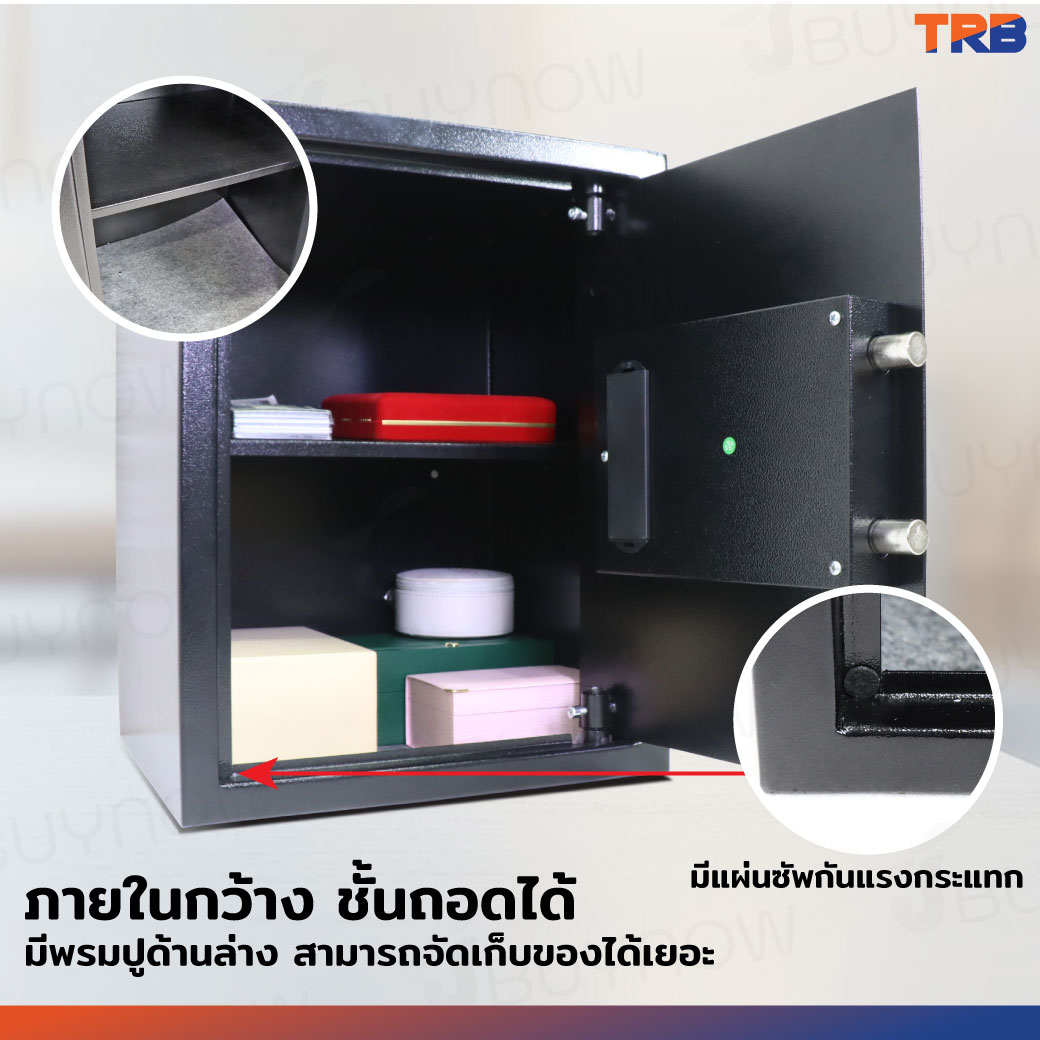 TRB ตู้เซฟอิเล็กทรอนิกส์ 31x35x45 ซม.รหัสผ่าน+กุญแจ บอดี้สีดำ-แผงหน้าปัดสีเงิน