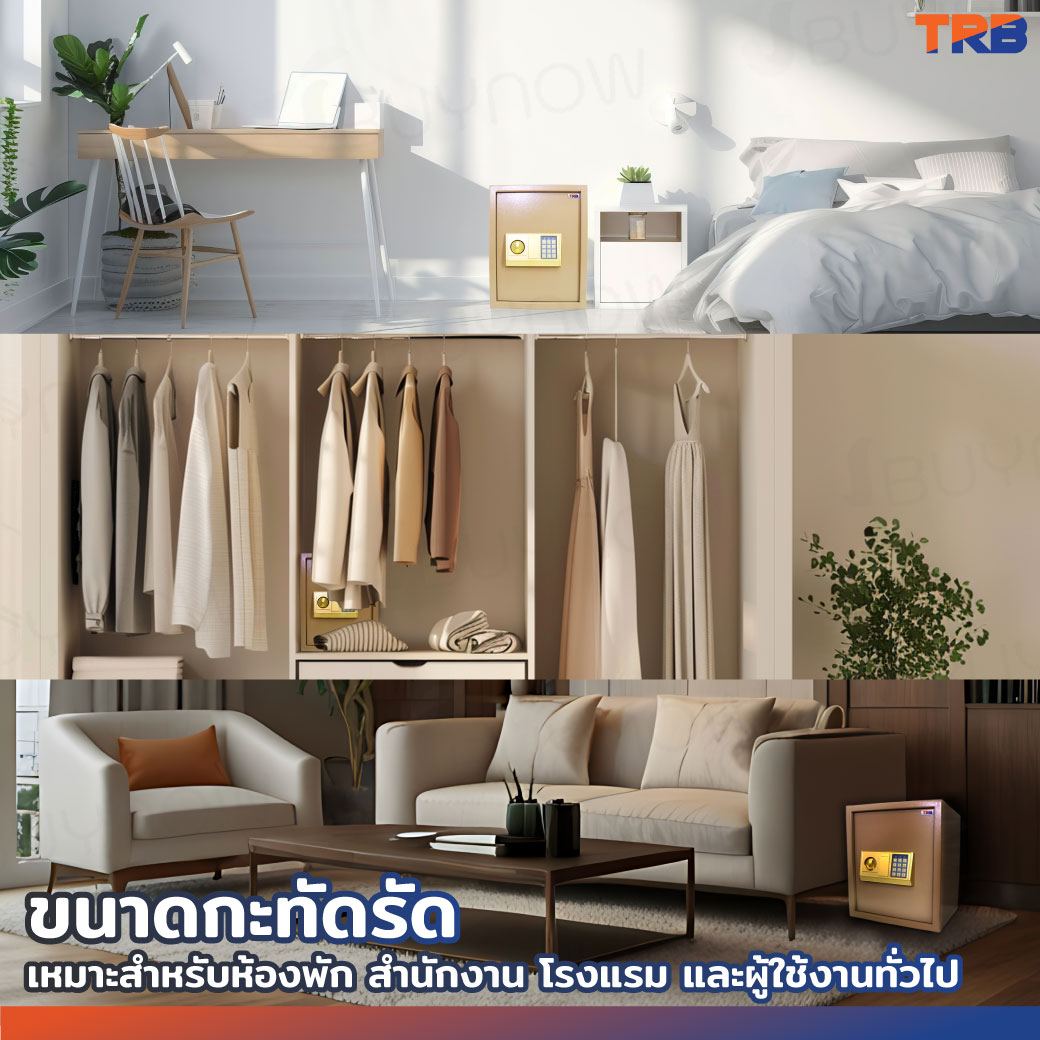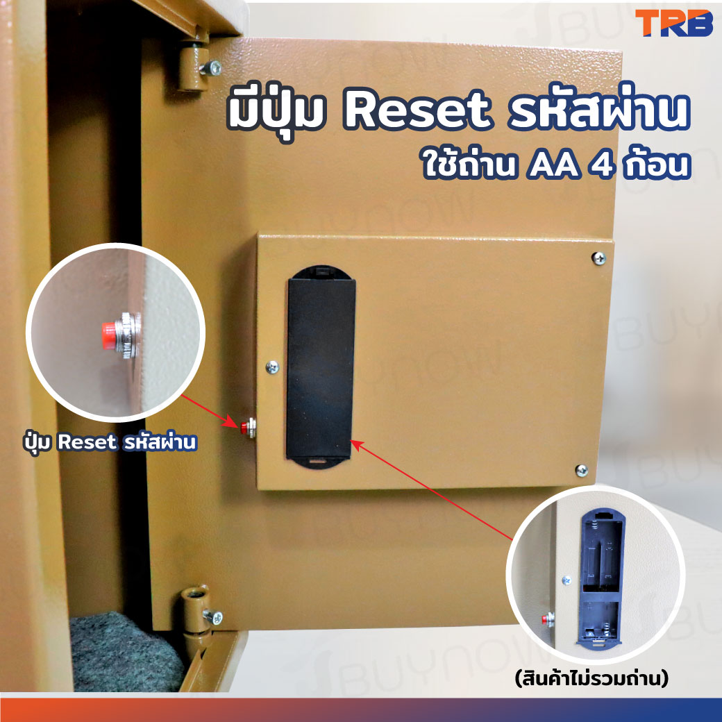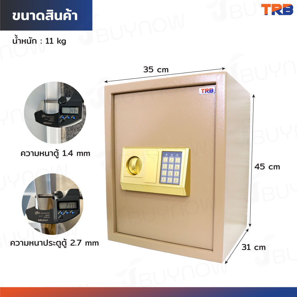 TRB ตู้เซฟอิเล็กทรอนิกส์ 31x35x45 ซม.รหัสผ่าน+กุญแจ บอดี้สีทอง-แผงหน้าปัดสีทอง