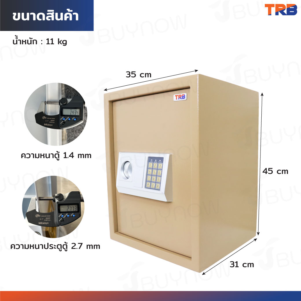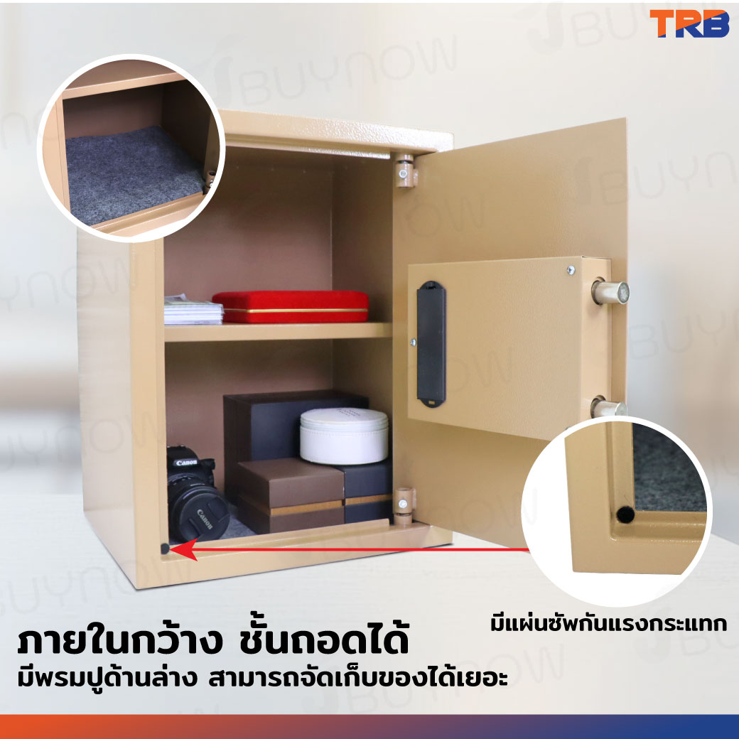 TRB ตู้เซฟอิเล็กทรอนิกส์ 31x35x45 ซม.รหัสผ่าน+กุญแจ บอดี้สีทอง-แผงหน้าปัดสีเงิน