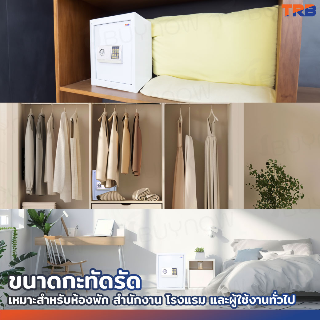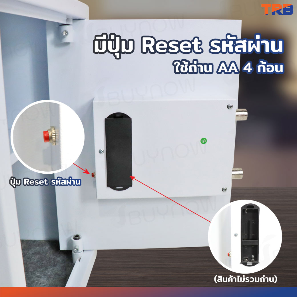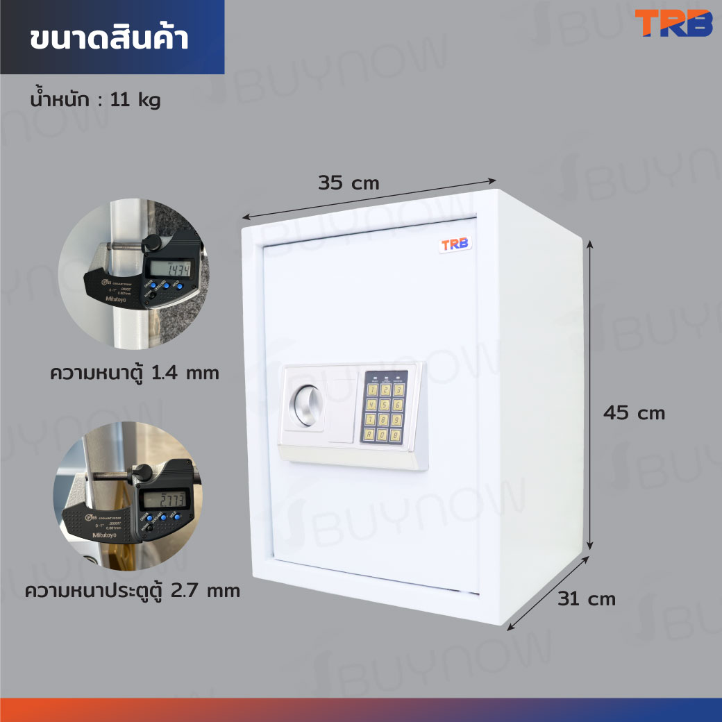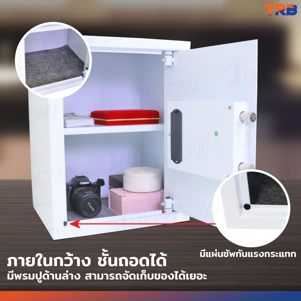 TRB ตู้เซฟอิเล็กทรอนิกส์ 31x35x45 ซม.รหัสผ่าน+กุญแจ บอดี้สีขาว-แผงหน้าปัดสีเงิน