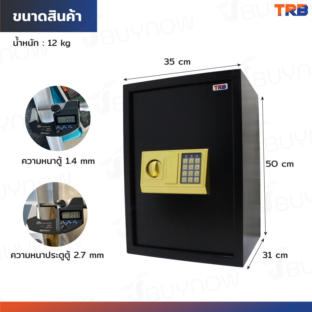 TRB ตู้เซฟอิเล็กทรอนิกส์ 31x35x50 ซม.รหัสผ่าน+กุญแจ บอดี้สีดำ-แผงหน้าปัดสีทอง