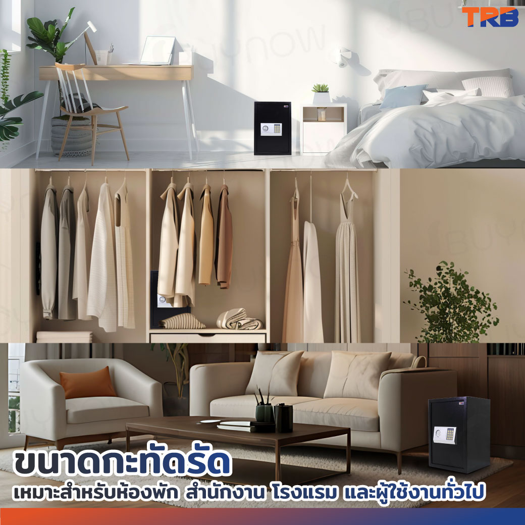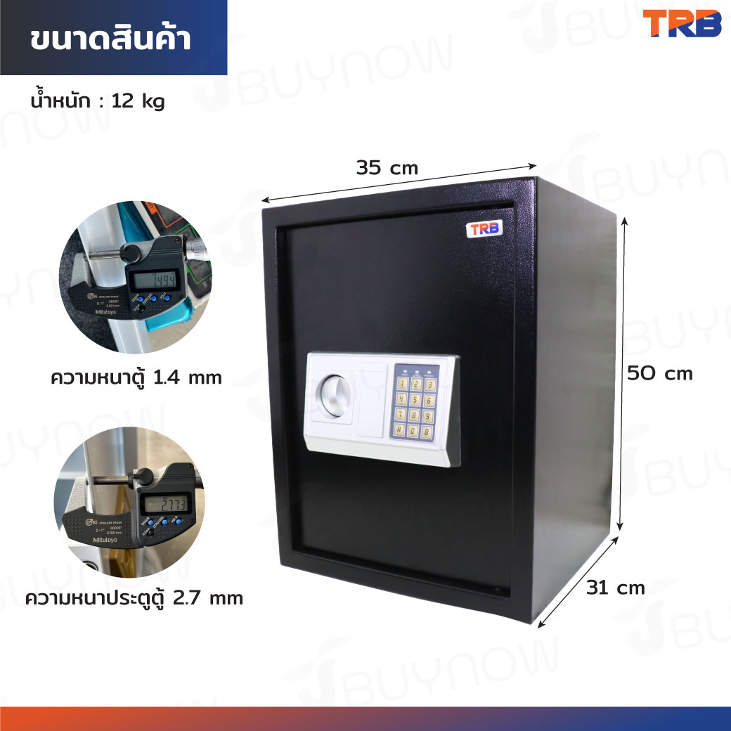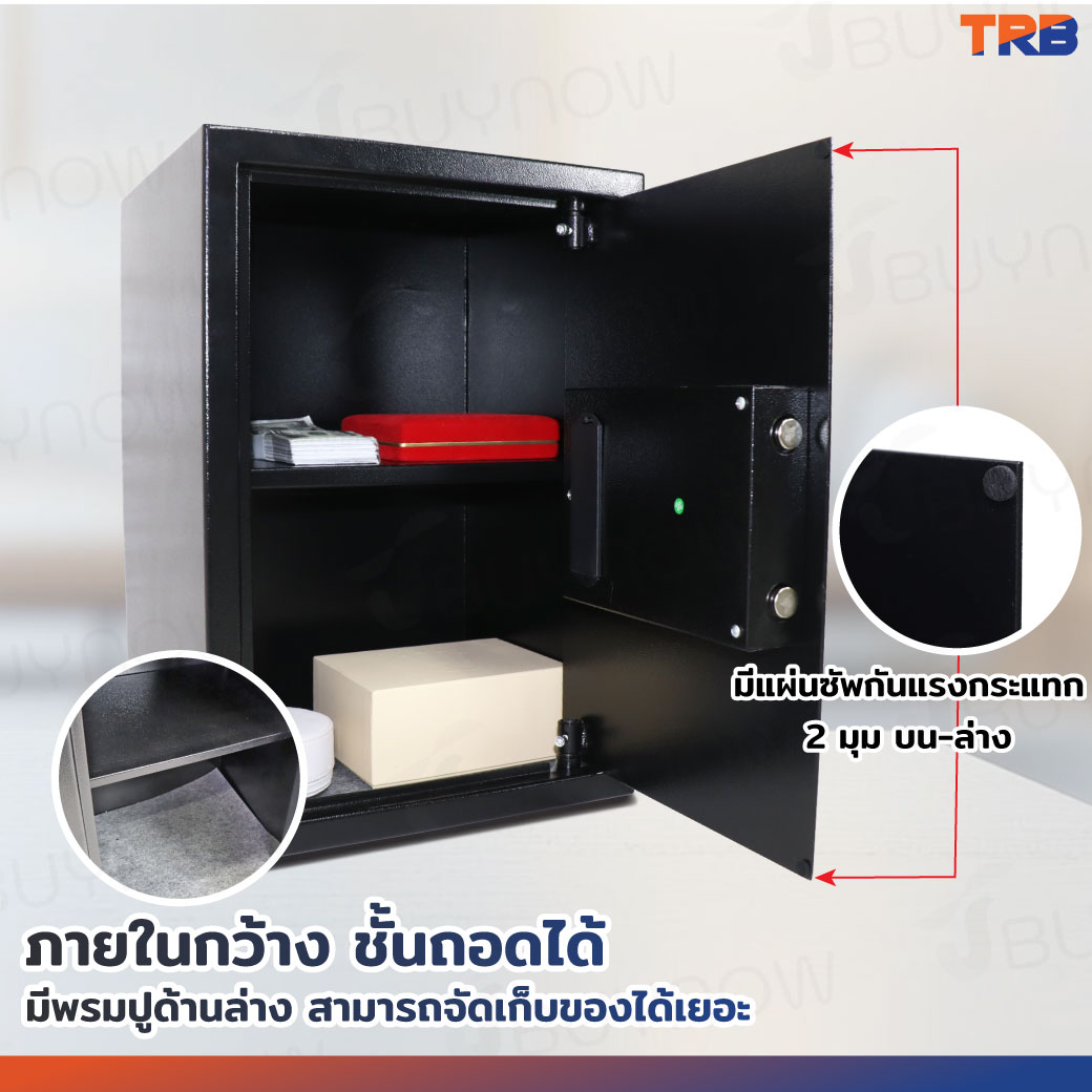 TRB ตู้เซฟอิเล็กทรอนิกส์ 31x35x50 ซม.รหัสผ่าน+กุญแจ บอดี้สีดำ-แผงหน้าปัดสีเงิน