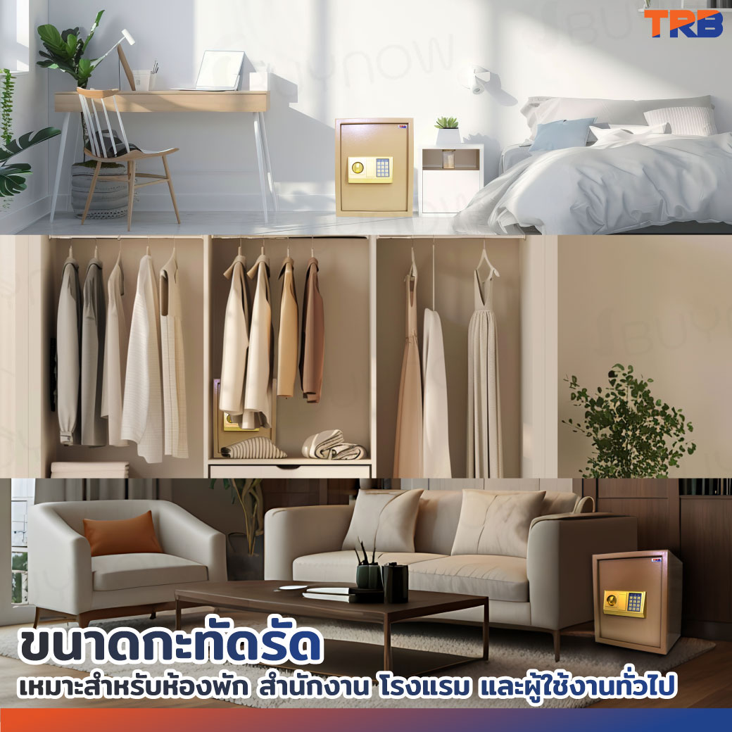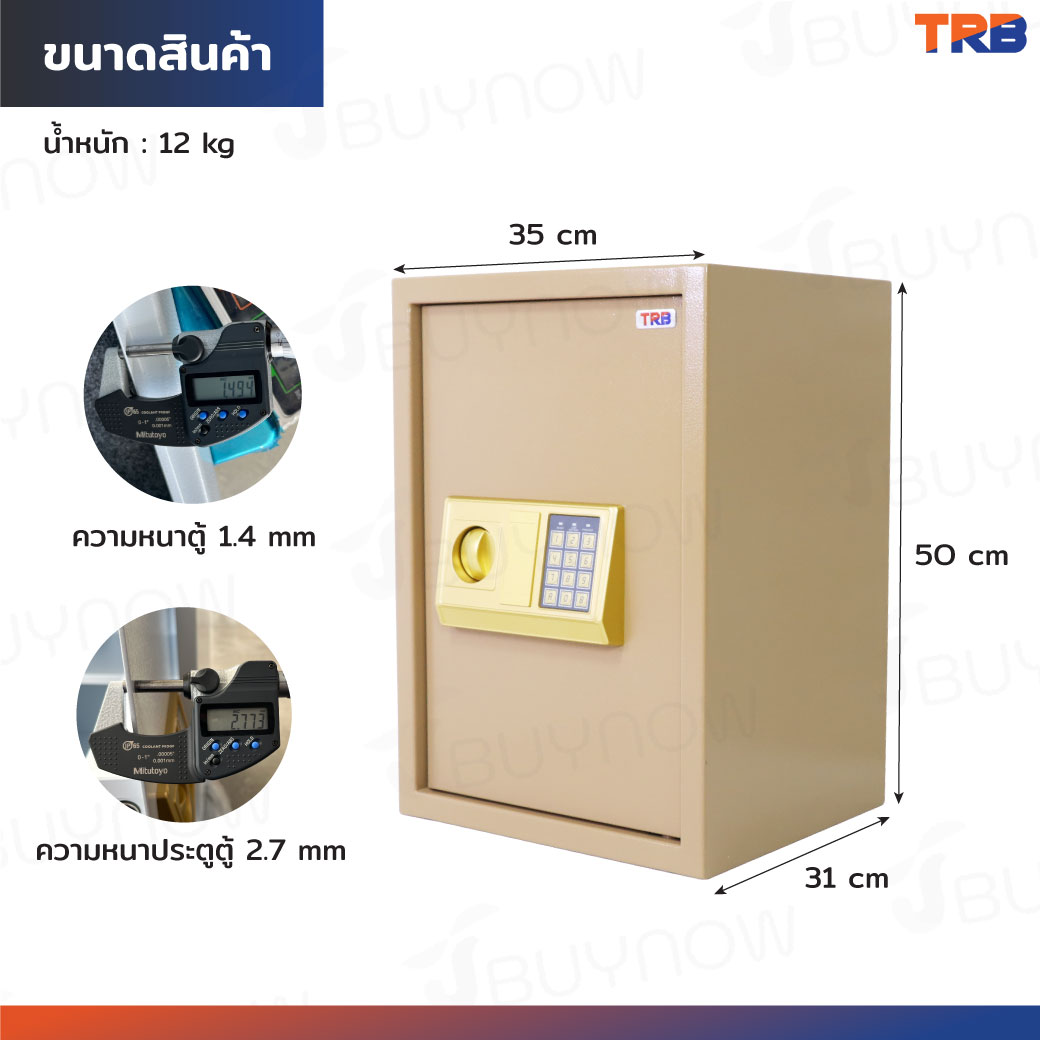 TRB ตู้เซฟอิเล็กทรอนิกส์ 31x35x50 ซม.รหัสผ่าน+กุญแจ บอดี้สีทอง-แผงหน้าปัดสีทอง
