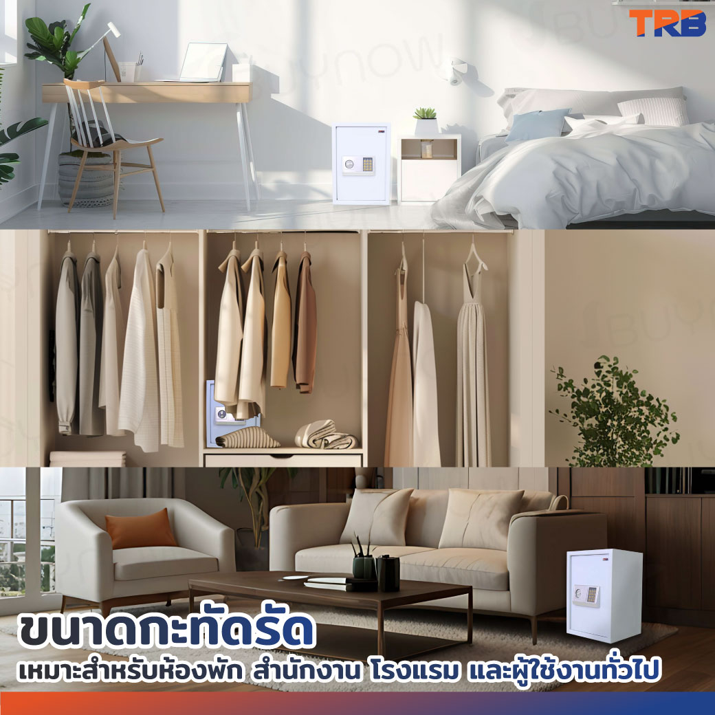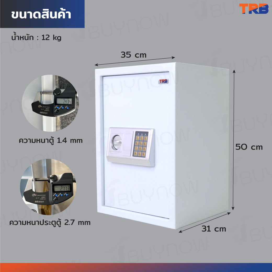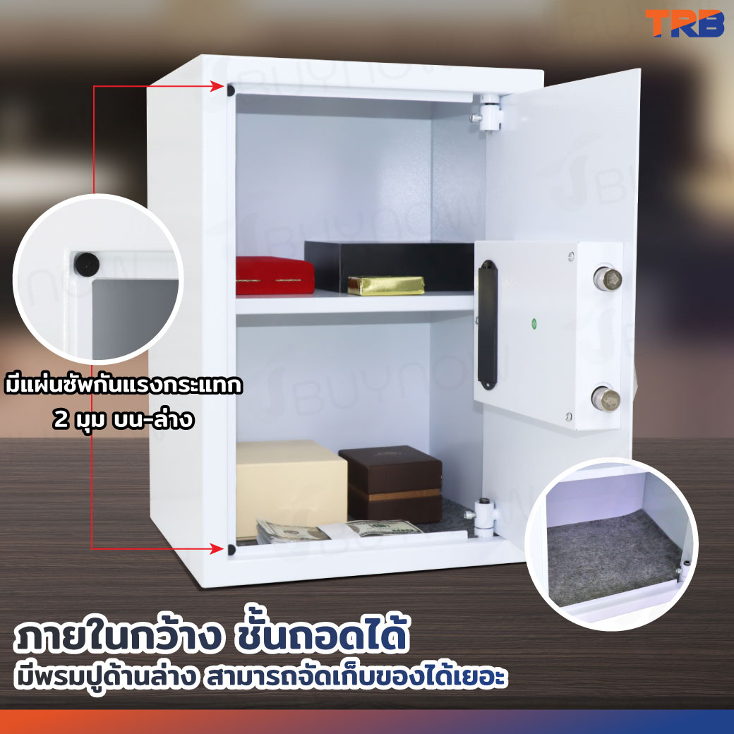 TRB ตู้เซฟอิเล็กทรอนิกส์ 31x35x50 ซม.รหัสผ่าน+กุญแจ บอดี้สีขาว-แผงหน้าปัดสีเงิน