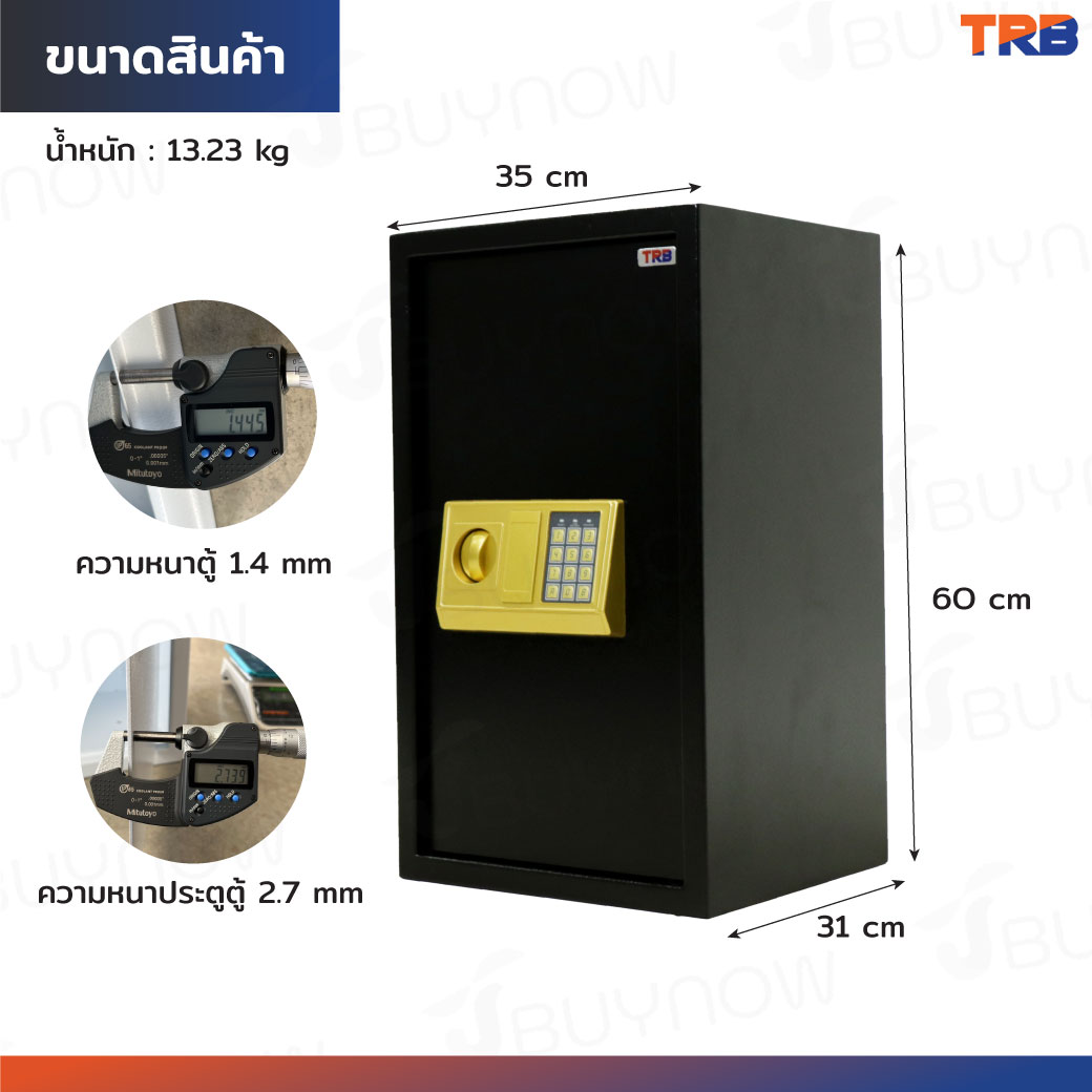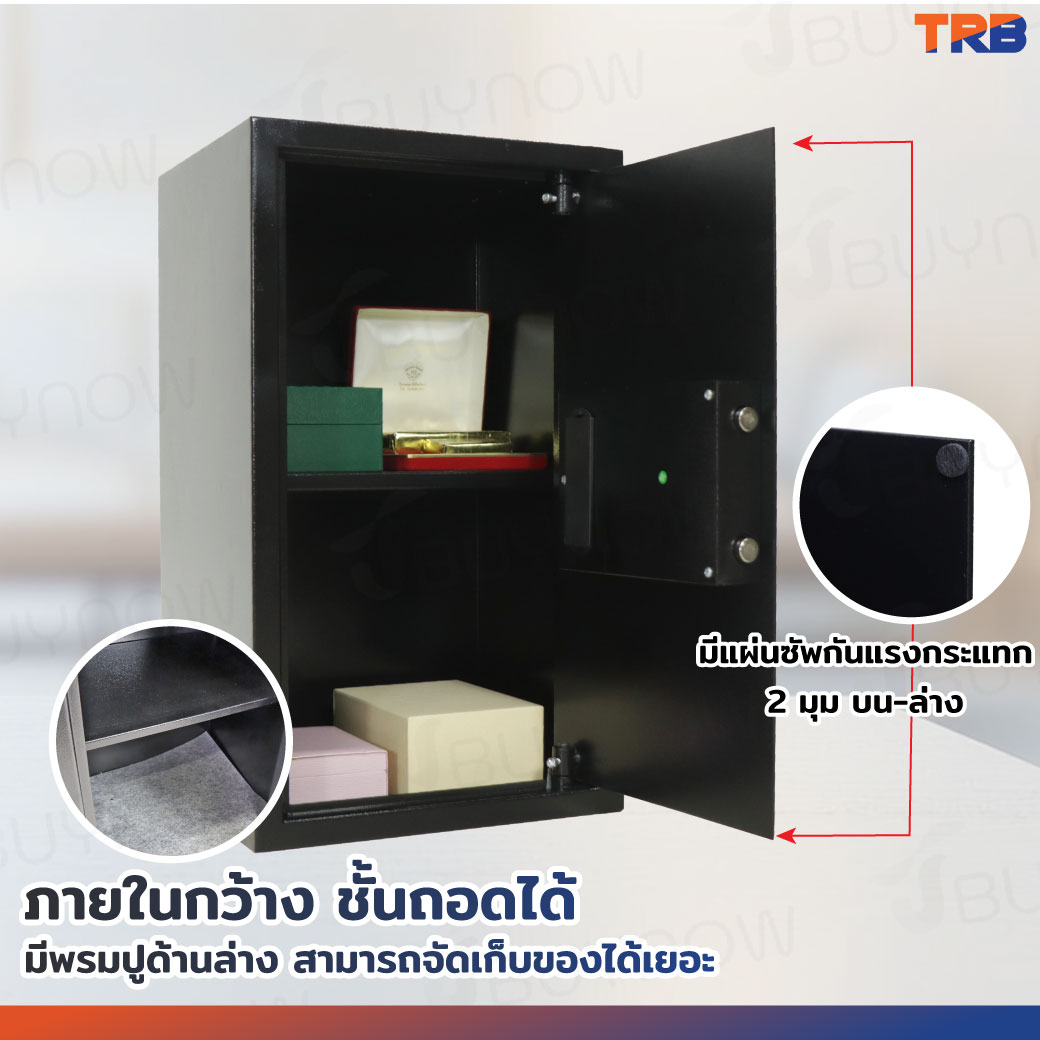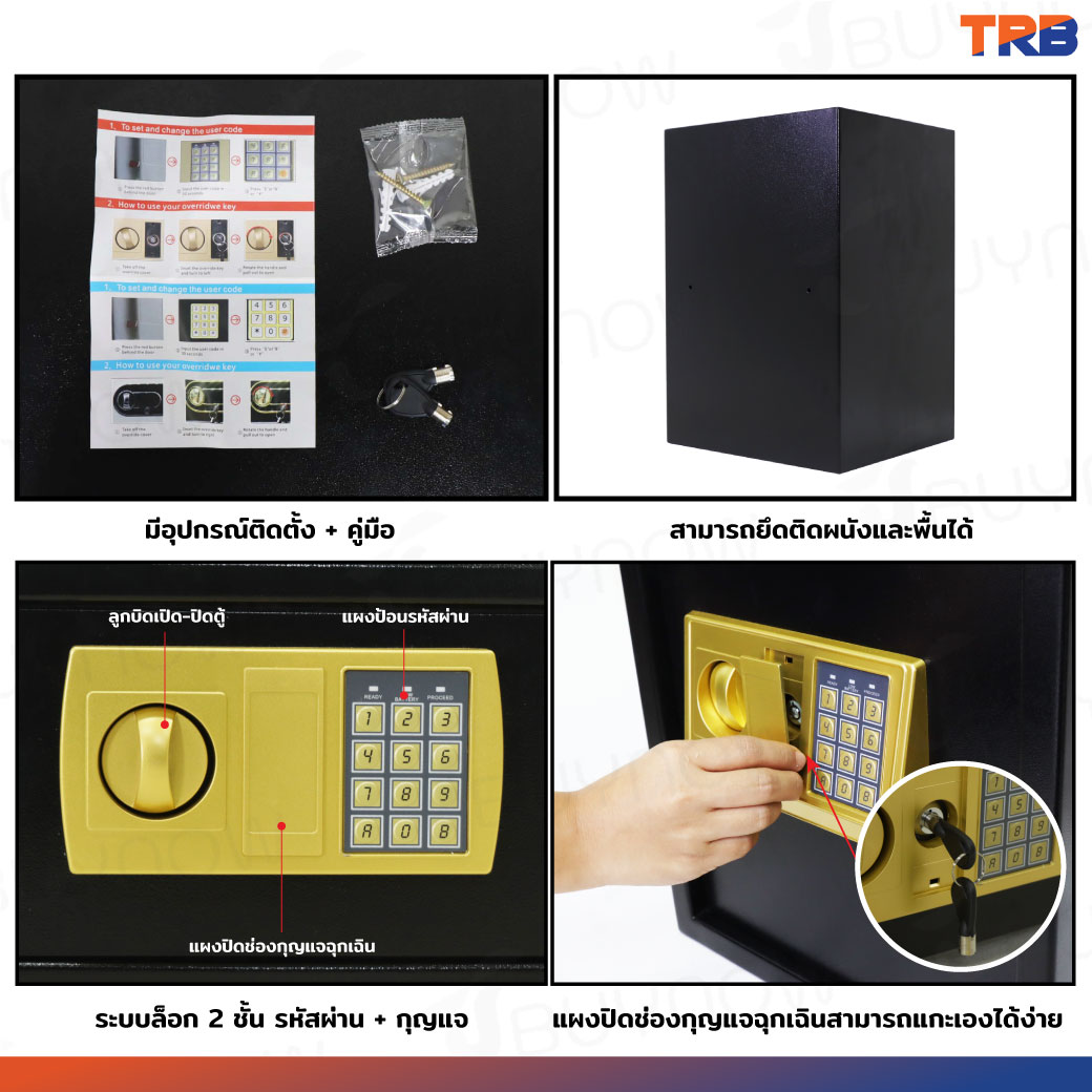 TRB ตู้เซฟอิเล็กทรอนิกส์ 31x35x60 ซม.รหัสผ่าน+กุญแจ บอดี้สีดำ-แผงหน้าปัดสีทอง