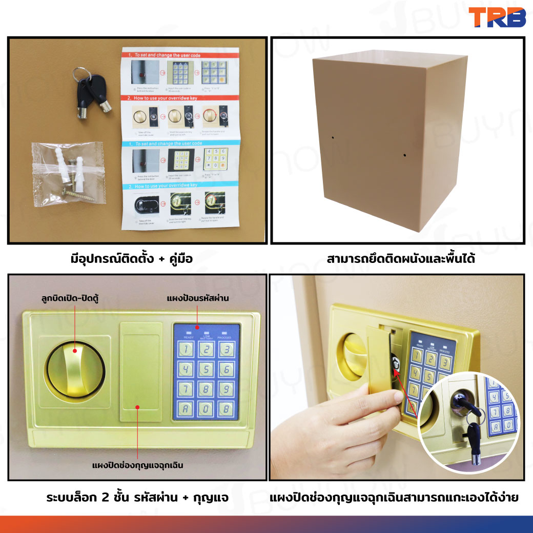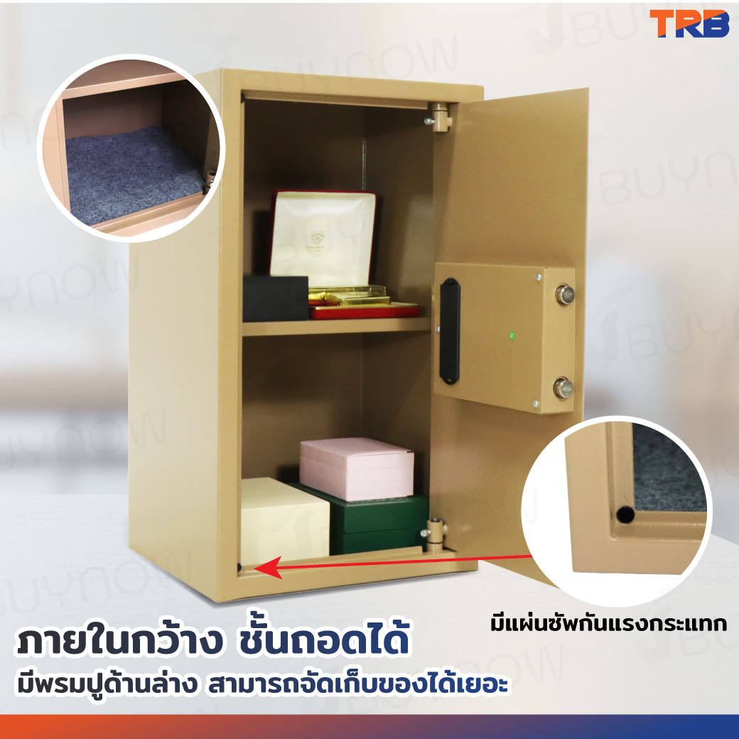 TRB ตู้เซฟอิเล็กทรอนิกส์ 31x35x60 ซม.รหัสผ่าน+กุญแจ บอดี้สีทอง-แผงหน้าปัดสีทอง