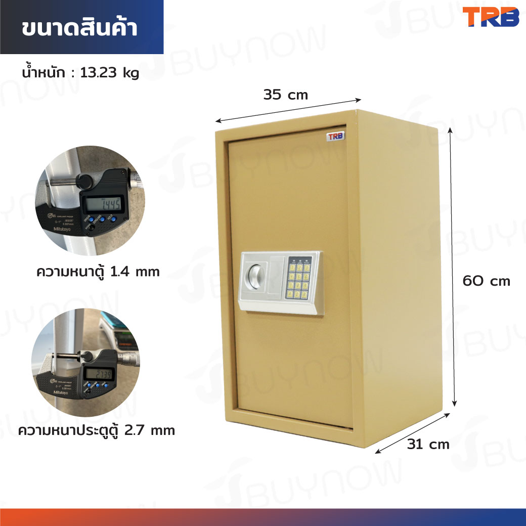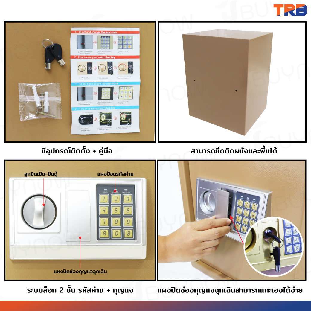 TRB ตู้เซฟอิเล็กทรอนิกส์ 31x35x60 ซม.รหัสผ่าน+กุญแจ บอดี้สีทอง-แผงหน้าปัดสีเงิน