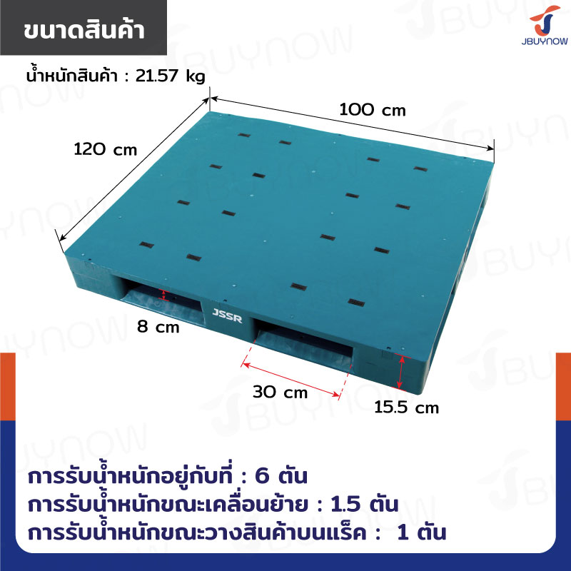 พาเลทพลาสติก HDPE หน้าทึบ 100x120x15.5 cm สีเขียว JSSR JBUYNOW 1210