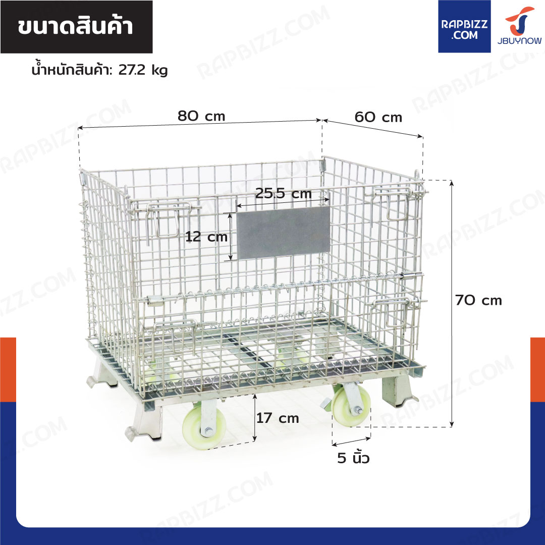 ตะแกรงเหล็กใส่ของ พับได้ 600 kg 60x80x70 cm (รุ่นมีล้อ)