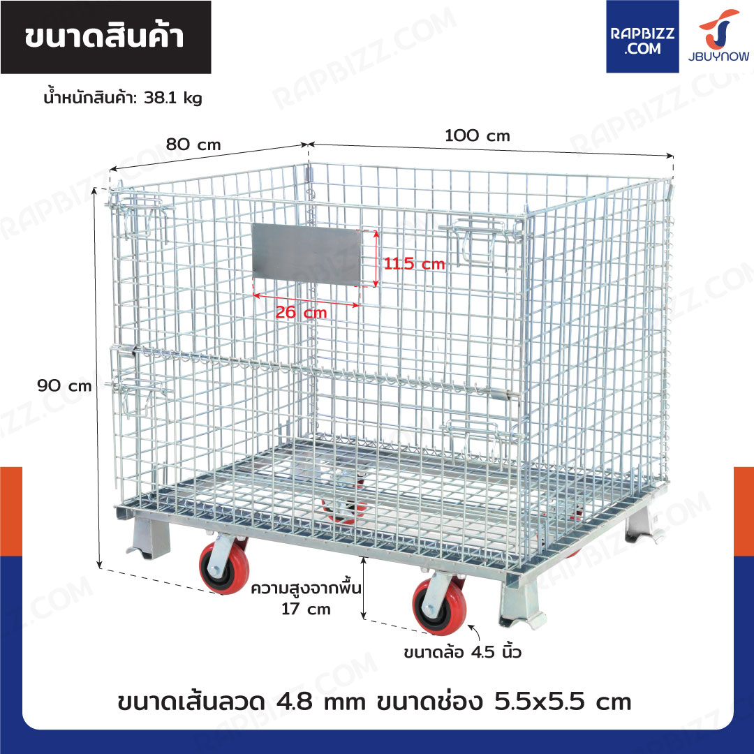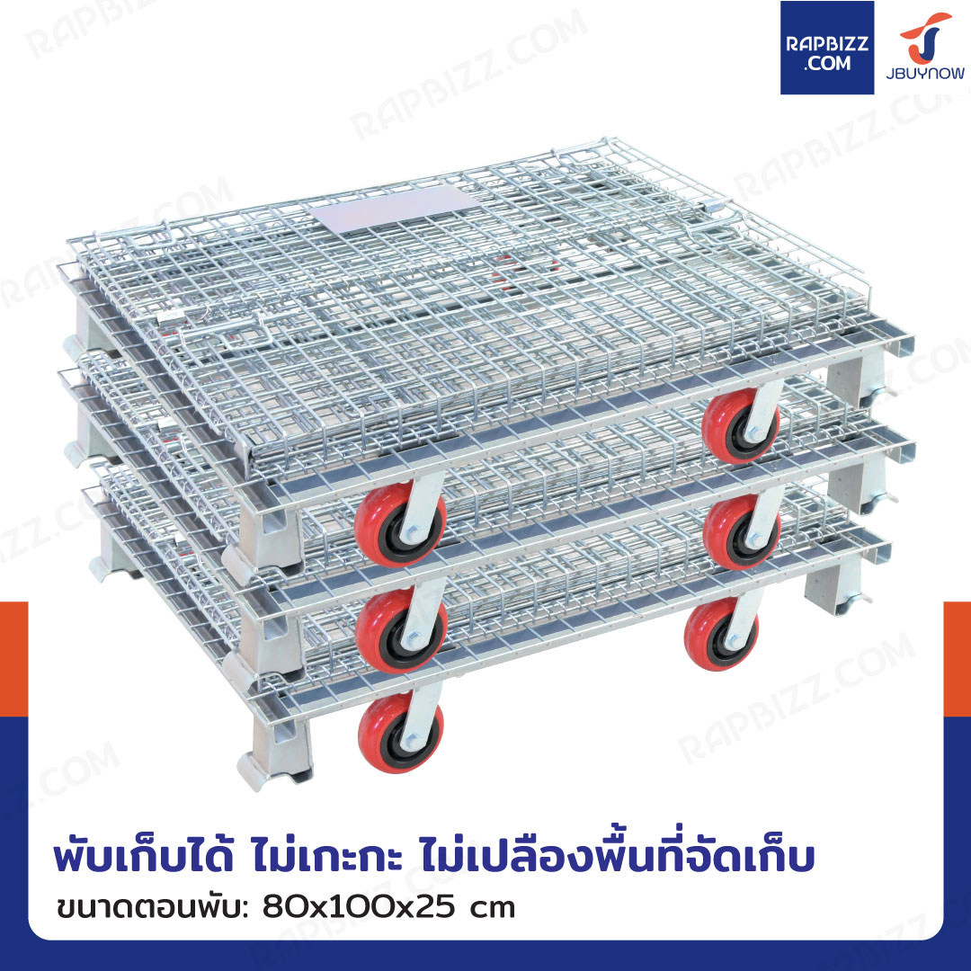 ตะแกรงเหล็กใส่ของ พับได้ 800 kg 80x100x90 cm (รุ่นมีล้อ)