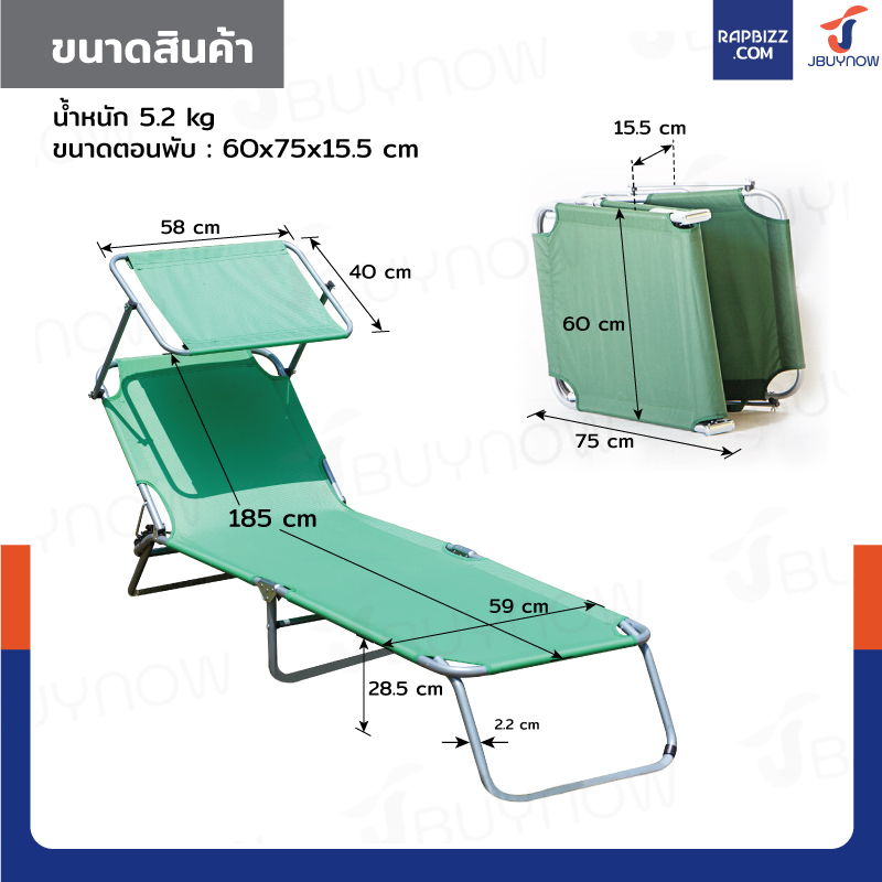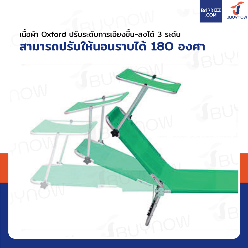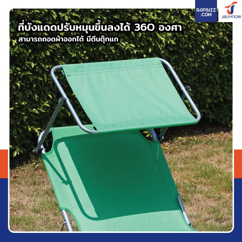 เก้าอี้นอน พับเก็บได้ พร้อมที่บังแดด 59x185x28.5 cm รับน้ำหนักได้ 100 kg สีเขียว JBUYNOW