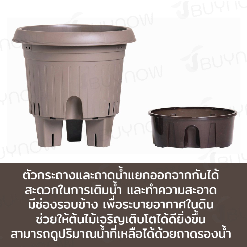 - ตัวกระถางและถาดน้ำแยกออกจากกันได้ สะดวกในการเติมน้ำ และทำความสะอาด
