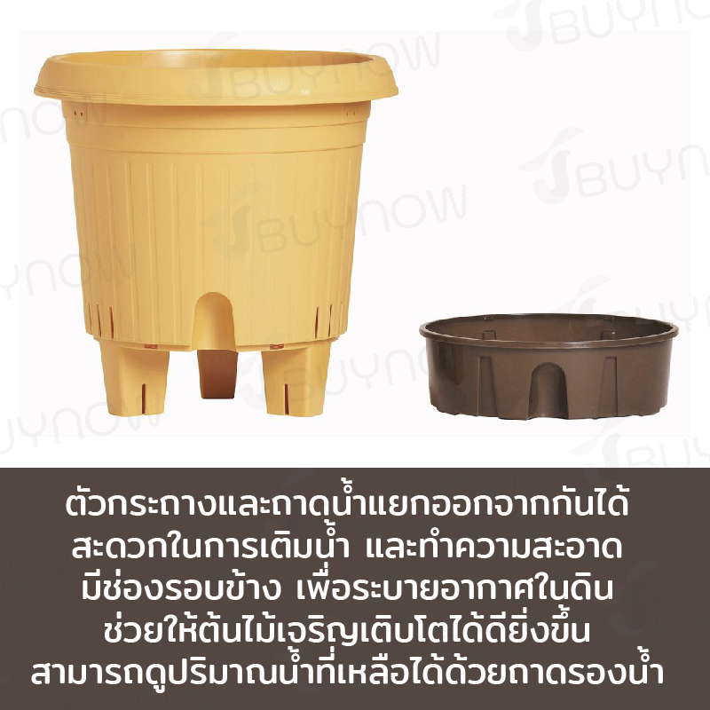 - ตัวกระถางและถาดน้ำแยกออกจากกันได้ สะดวกในการเติมน้ำ และทำความสะอาด