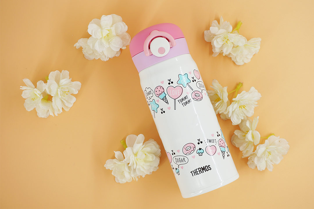 Thermos water bottle กระติกน้ำสูญญากาศ เก็บอุณหภูมิร้อน-เย็น 400 ml JP Quality สีชมพู JNR-401 WH-P