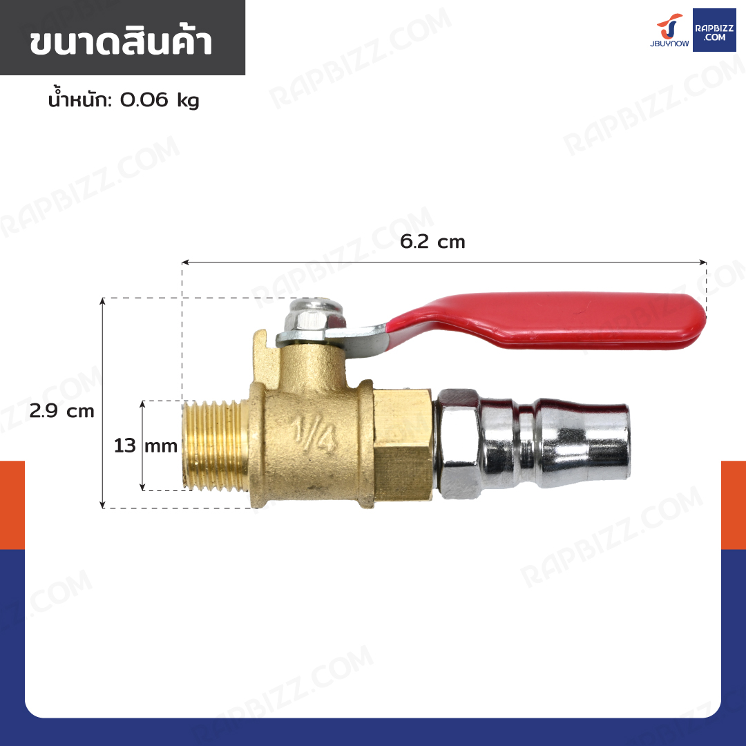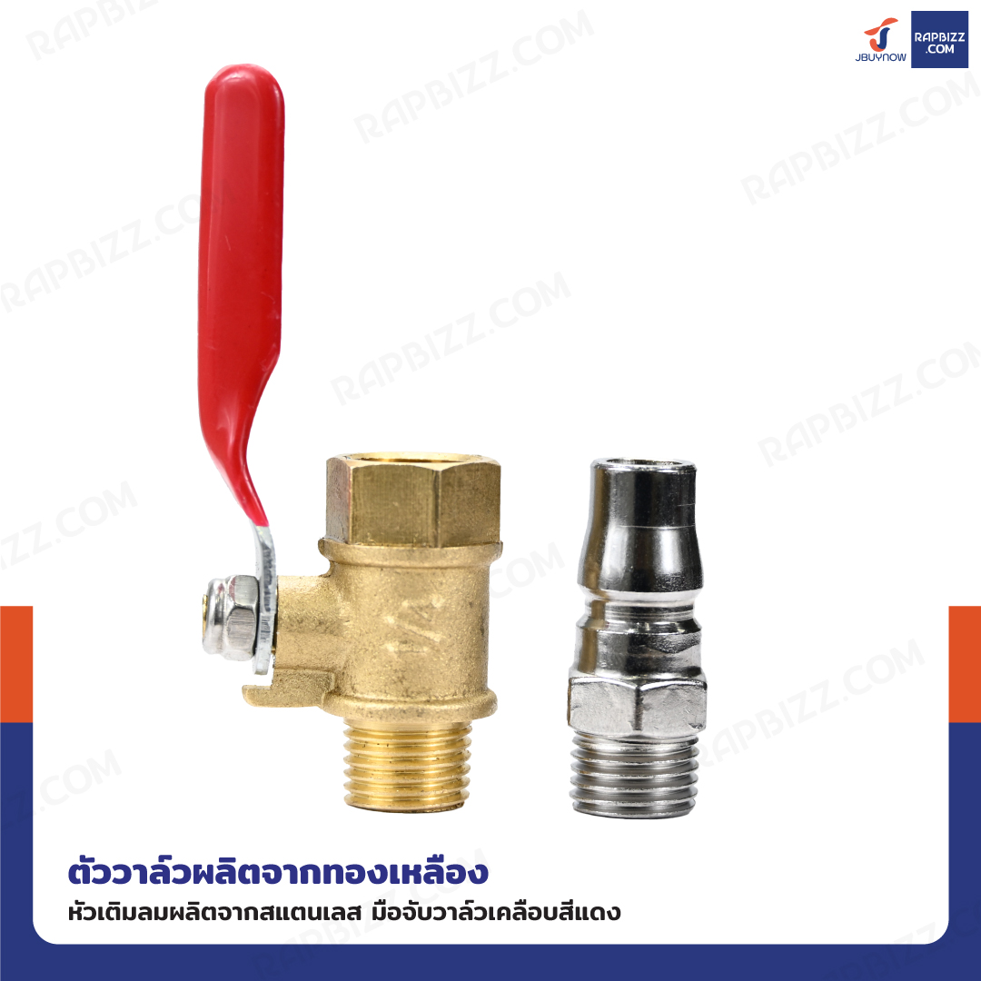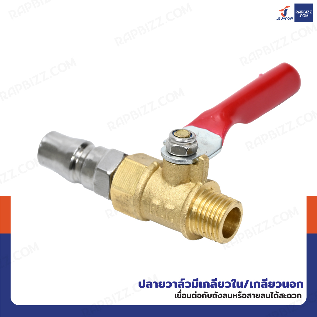 - ปลายวาล์วมีเกลียวใน/เกลียวนอก เชื่อมต่อกับถังลมหรือสายลมได้สะดวก