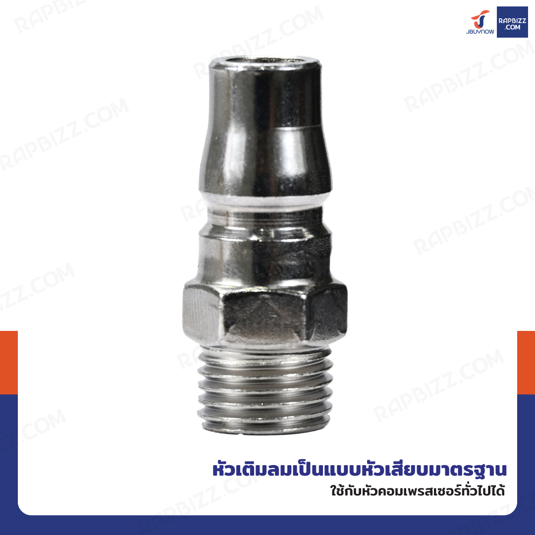 - หัวเติมลมเป็นแบบหัวเสียบมาตรฐาน (ใช้กับหัวคอมเพรสเซอร์ทั่วไปได้)