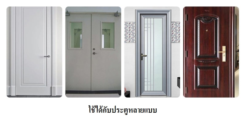 - ติดตั้งได้ทั้งประตูไม้, ประตูเหล็ก, ประตูอะลูมิเนียม และประตูวัสดุอื่นๆ