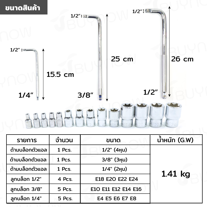 - 1×ด้ามบล็อกตัวแอล 1/4 (2หุน)