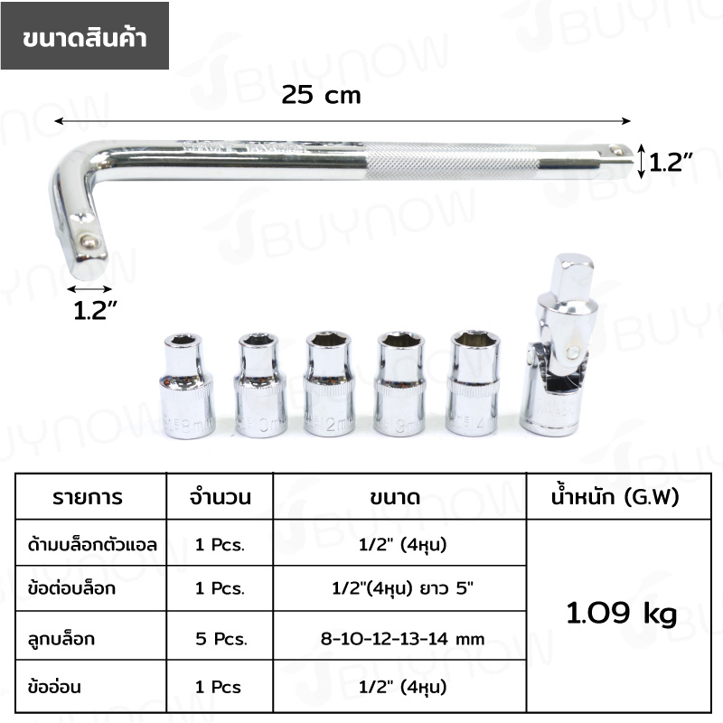 - 1×ด้ามบล็อกตัวแอล 1/2 (4หุน)