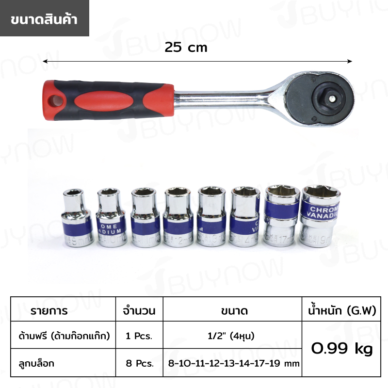 - 1×ด้ามฟรี (ด้ามก๊อกแก๊ก) 1/2 (4หุน)