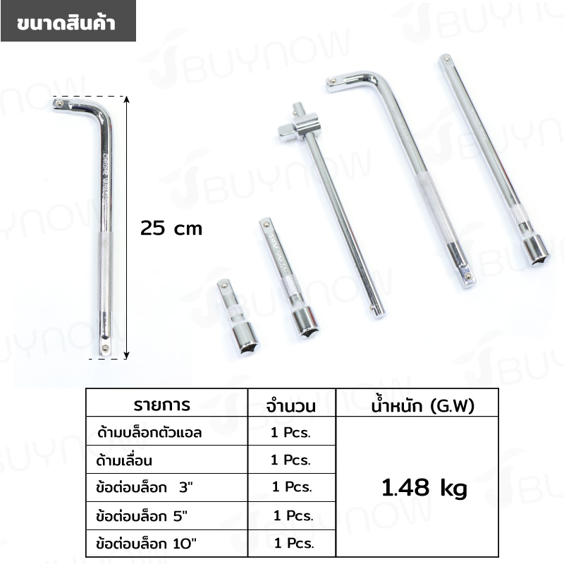 - ชุดบล็อกด้ามแอล+ข้อต่อ+ด้ามเลื่อน 5 ชิ้น