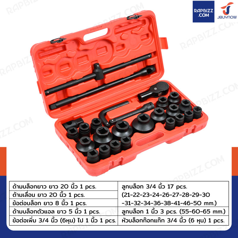 - ชุดบล็อก 26 ชิ้น 3/4 (6หุน) เหล็กดำ