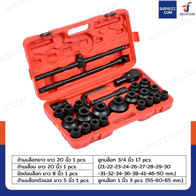 - ชุดบล็อก 26 ชิ้น 3/4 (6หุน) เหล็กดำ