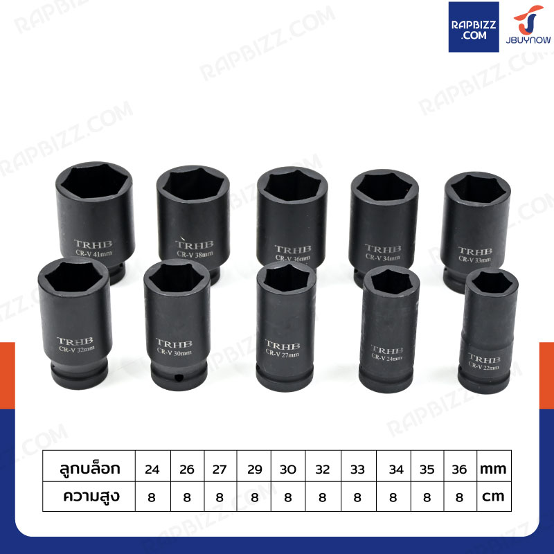 - ชุดลูกบล็อก 10 ชิ้น 3/4 (6หุน) 26-36 mm
