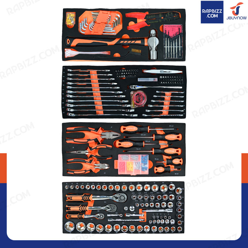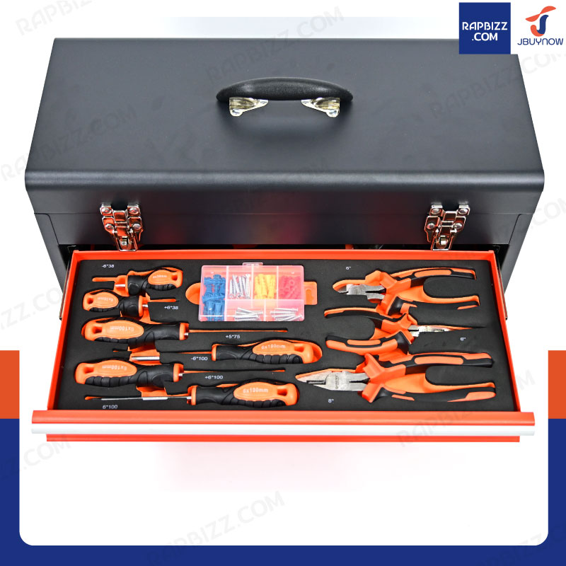 - ชุดกล่องเครื่องมือเหล็ก 3 ลิ้นชัก เครื่องมือ 408 ชิ้น