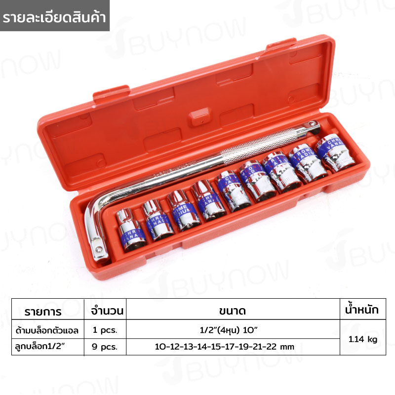 - 9×ลูกบล็อก 1/2 (4หุน)เบอร์ 10-12-13-14-15-17-19-21-22 mm