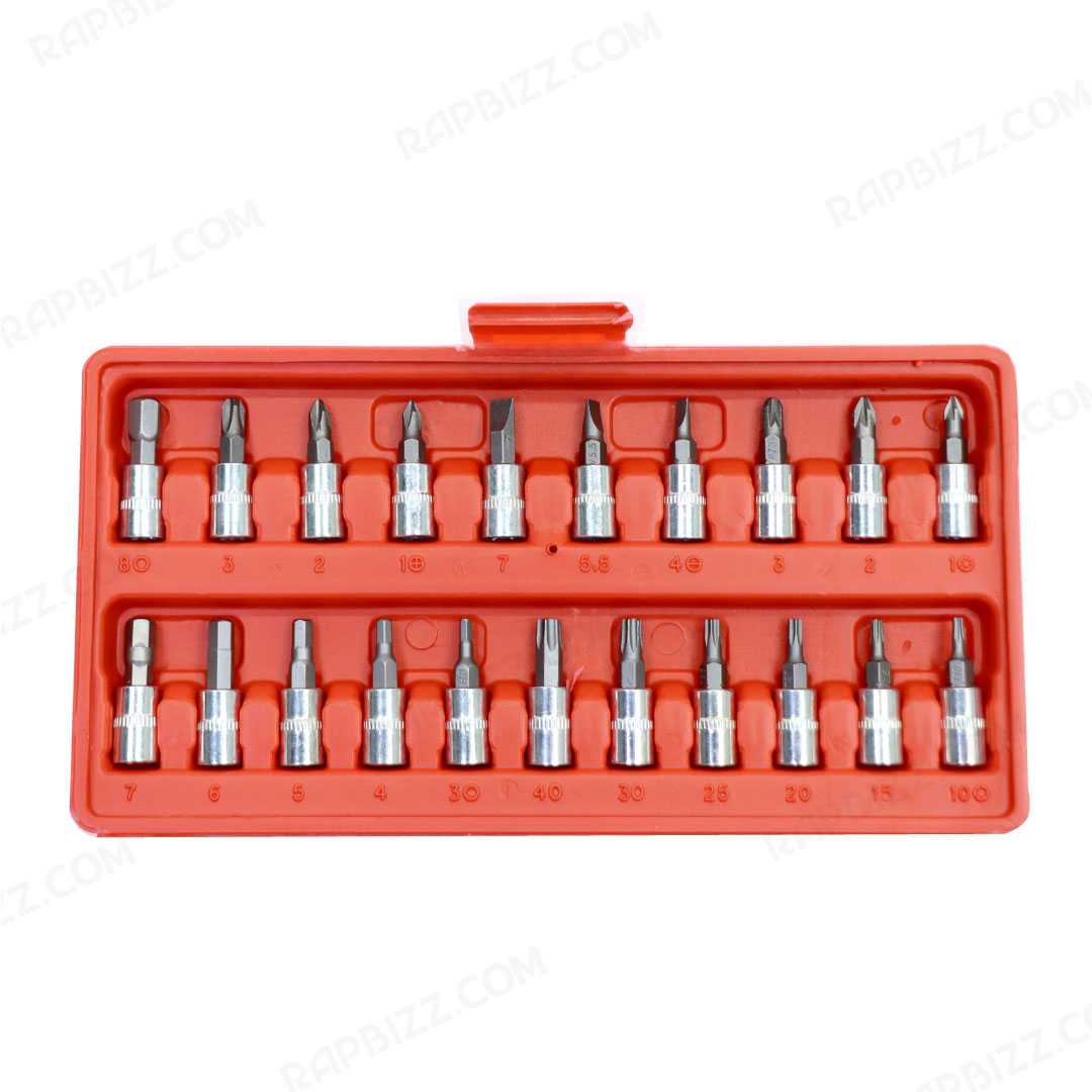- 21×ลูกบล็อกเดือยโผล่ 1/4 :SL4,5.5,7/PH1,2,3/PZ1,2,3/HEX3,4,5,6,7/T10,15,20,25,30,40