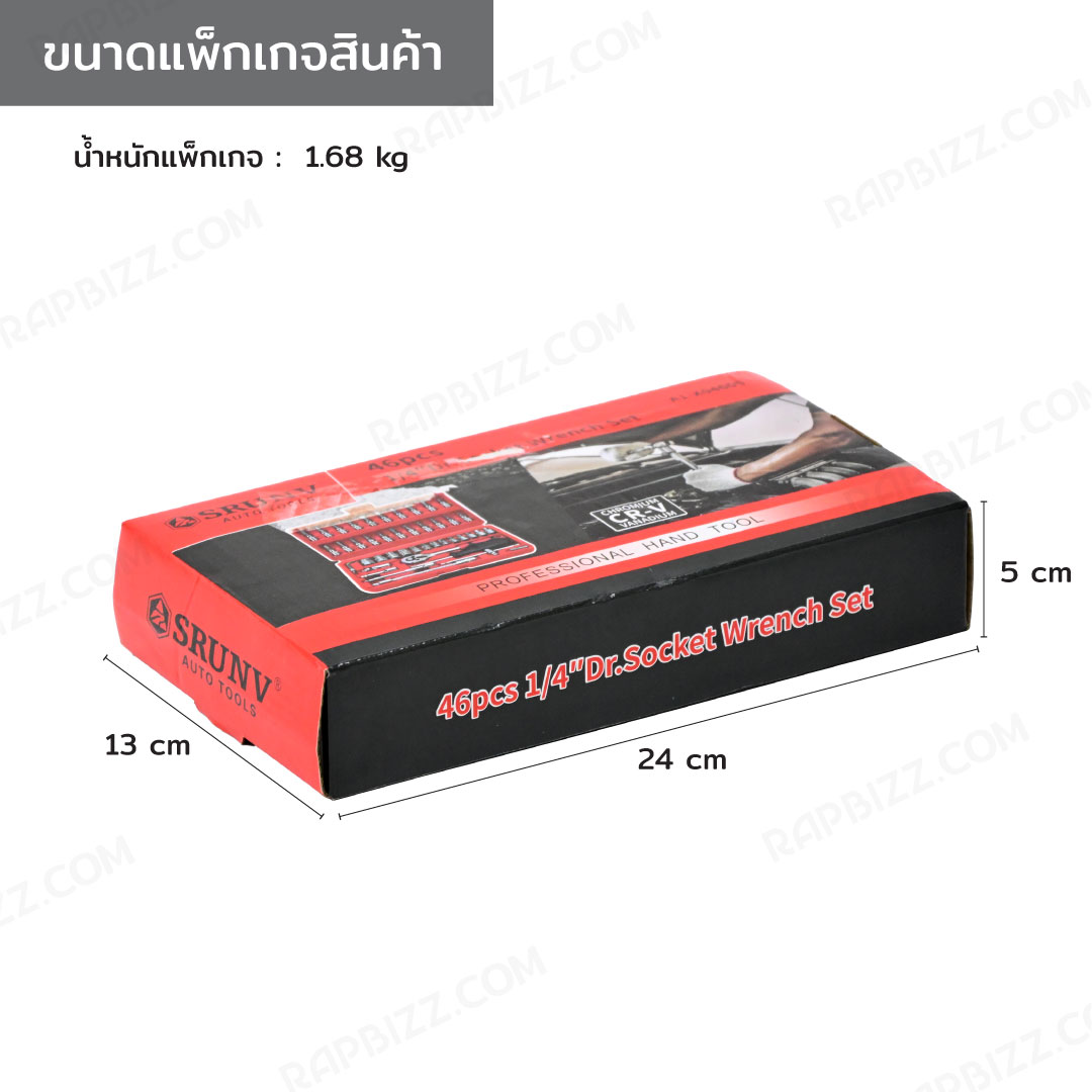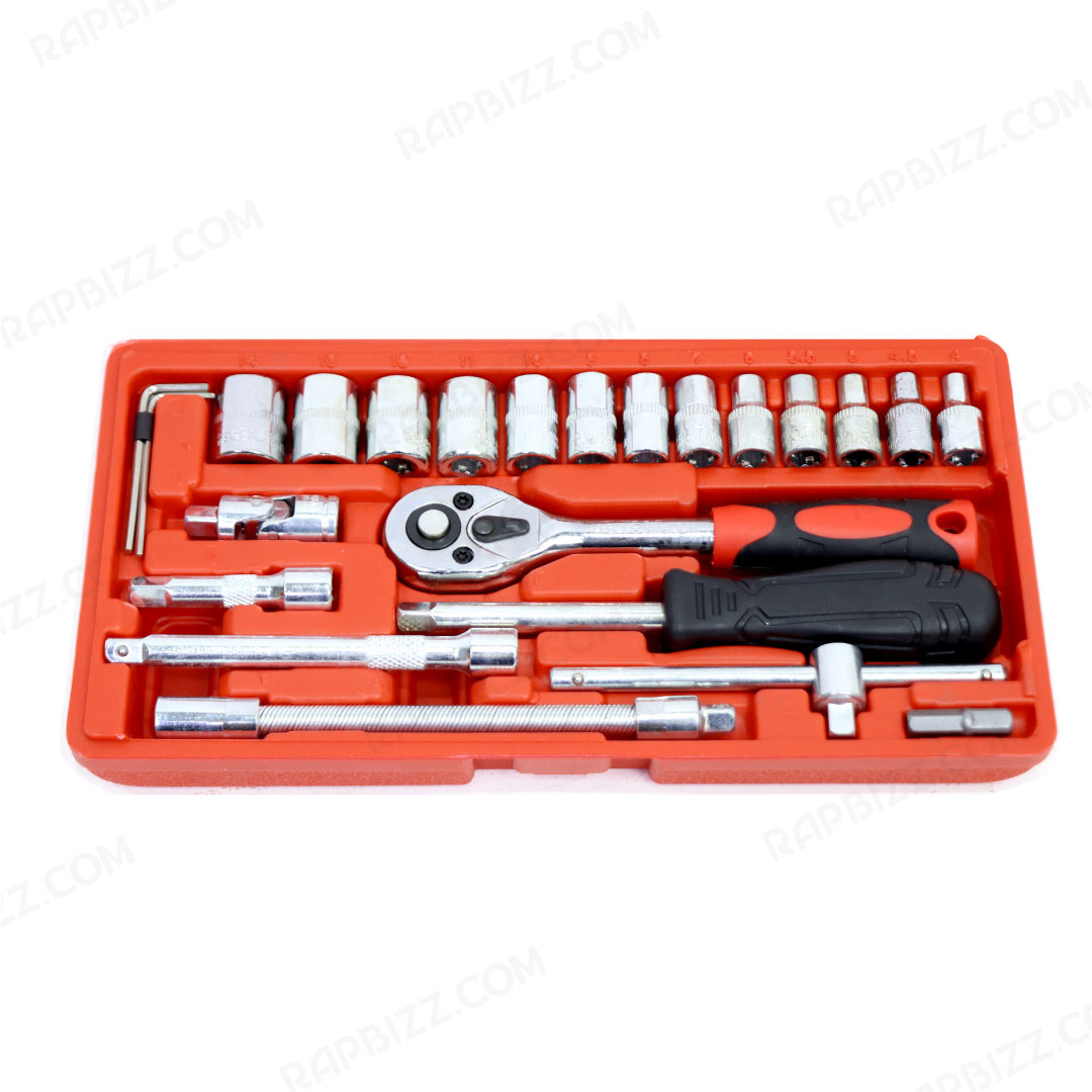 - ชุดเครื่องมือประแจบล็อก 46 ชิ้น 1/4 (2หุน)